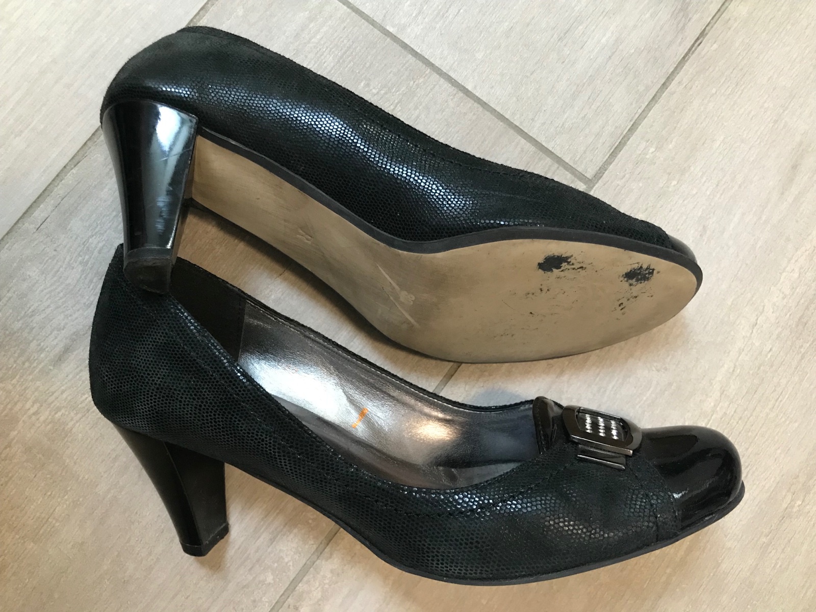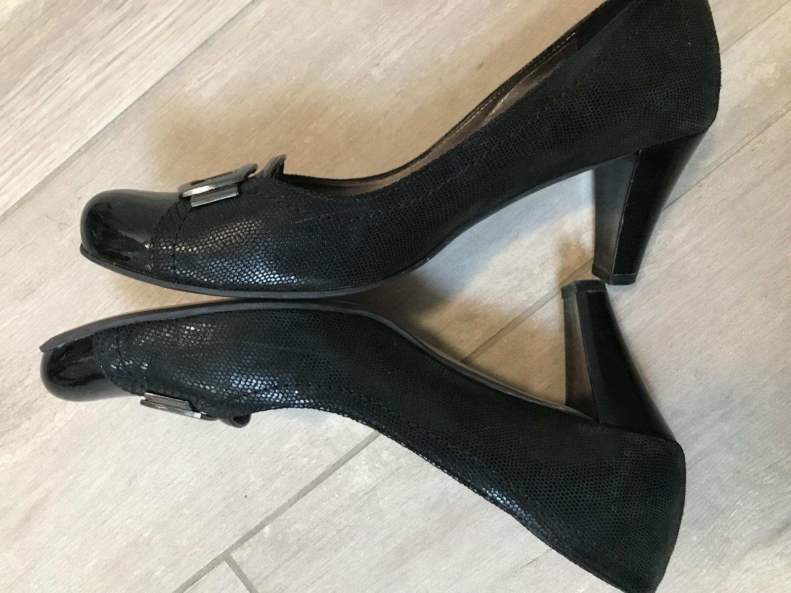 Krásne, kožené, kombinované, lak, kamienky, pár krát obuté, bežné známky používania