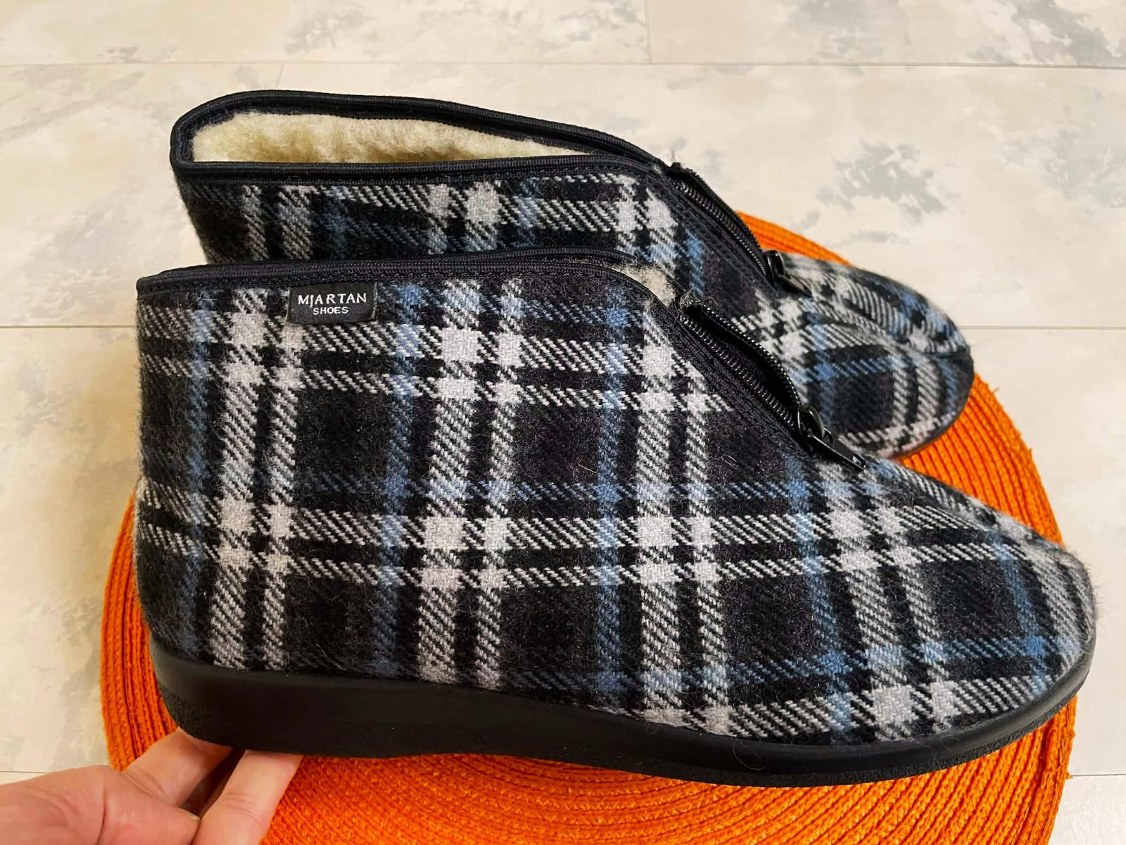 kvalitné kotníkové vysoké papuče pre seniorov - členkový model, sú zateplené ovčou vlnou,veľmi praktické obúvanie, mäkká pohodlná stielka je tiež zateplená,ľahká flexibilná podošva je na miernom kline,sú iba odskúšané...