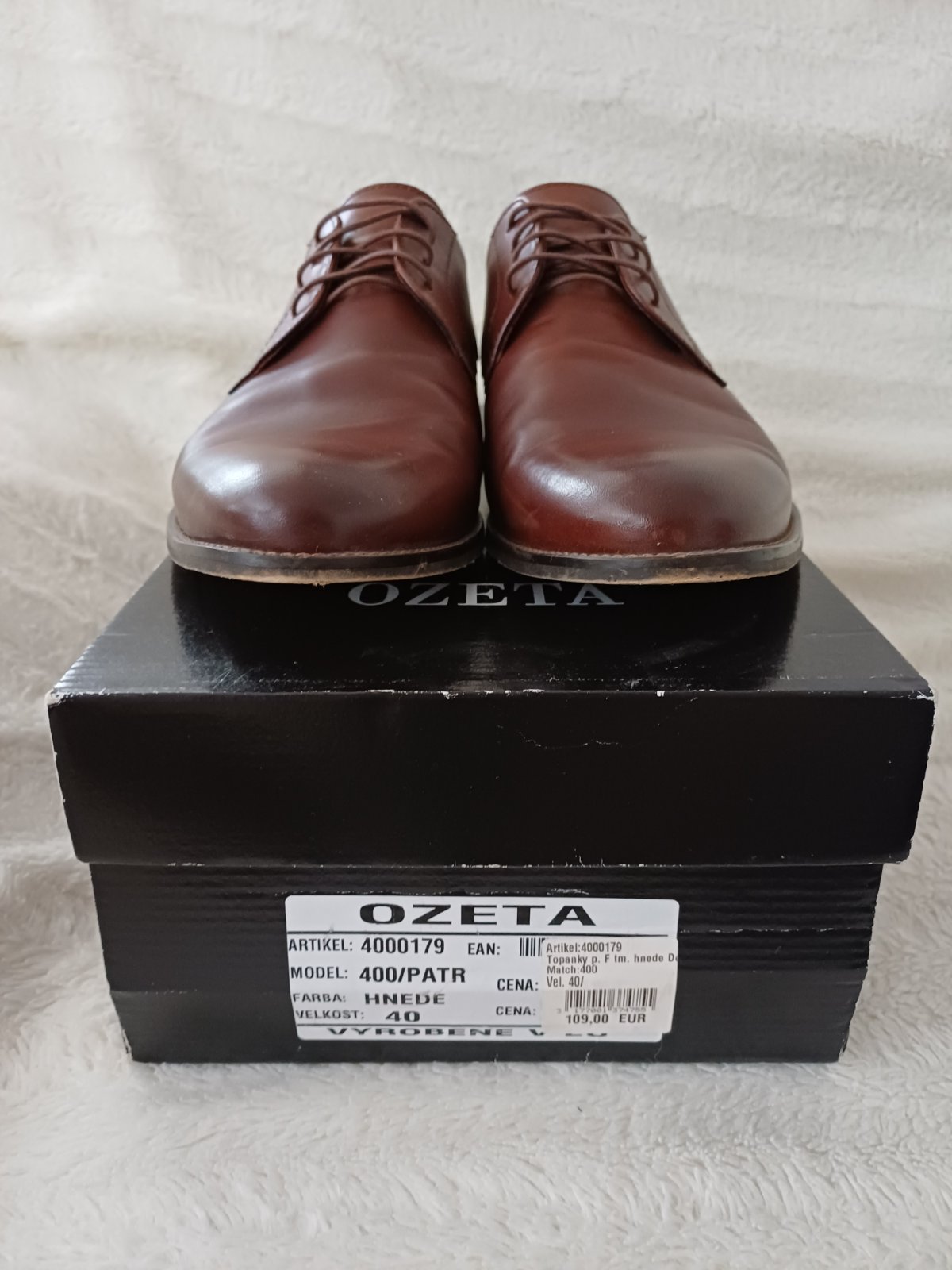 Predám pánske kožené topánky značky OZETA, veľkosť 40, farba hnedá, raz obuté, nezničené viď foto.