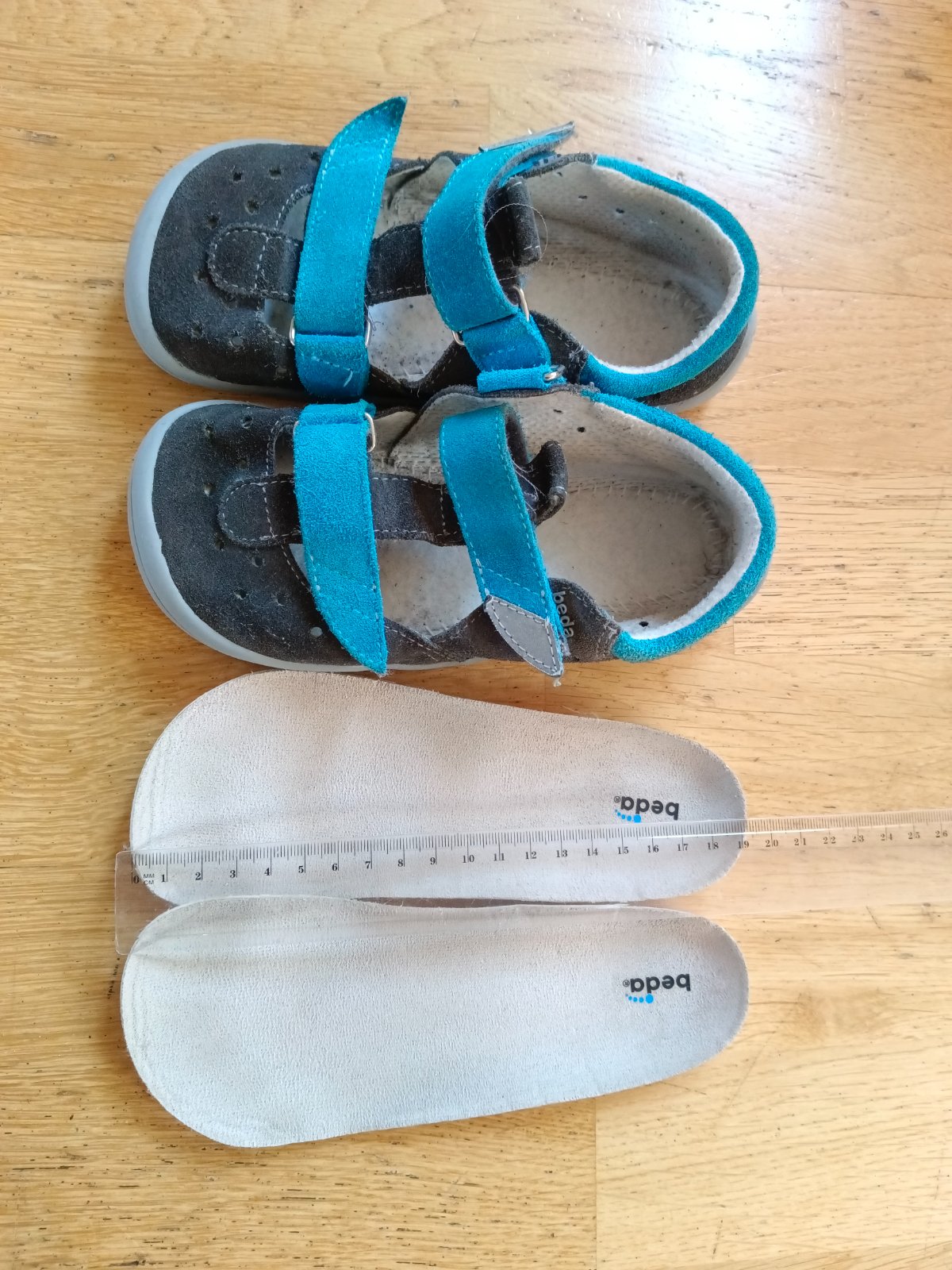 VD meraná meradlom 18,80cm. Dĺžka vložky meraná od ohybu 19cm. Nosené len v interiéri ako prezúvky.