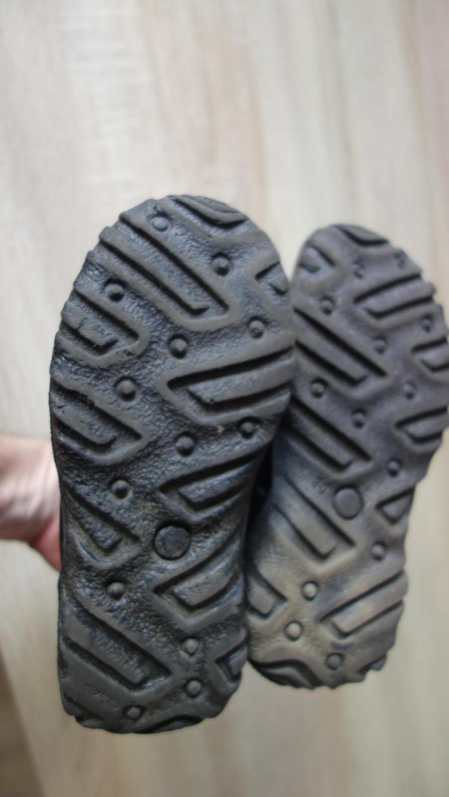 Nosené, v dobrom stave. Vnútro na jednej čižmičke na päte vyšúchané. Na druhej menej. Viď foto. Zvonka bez poškodení.