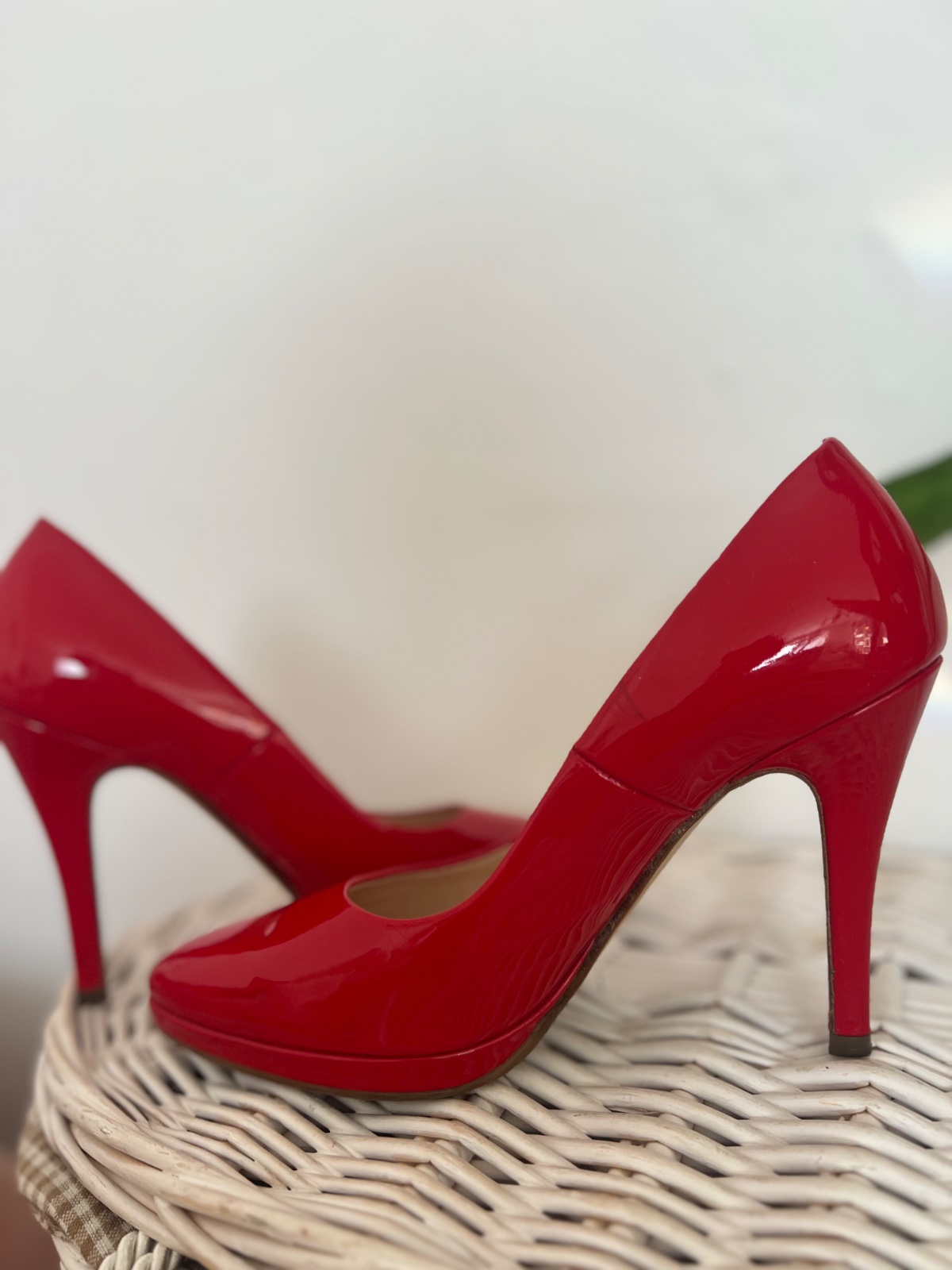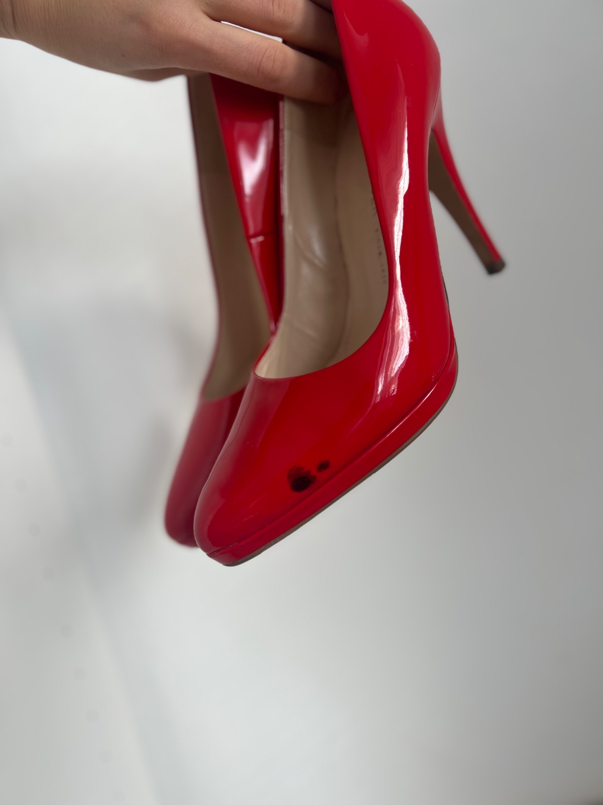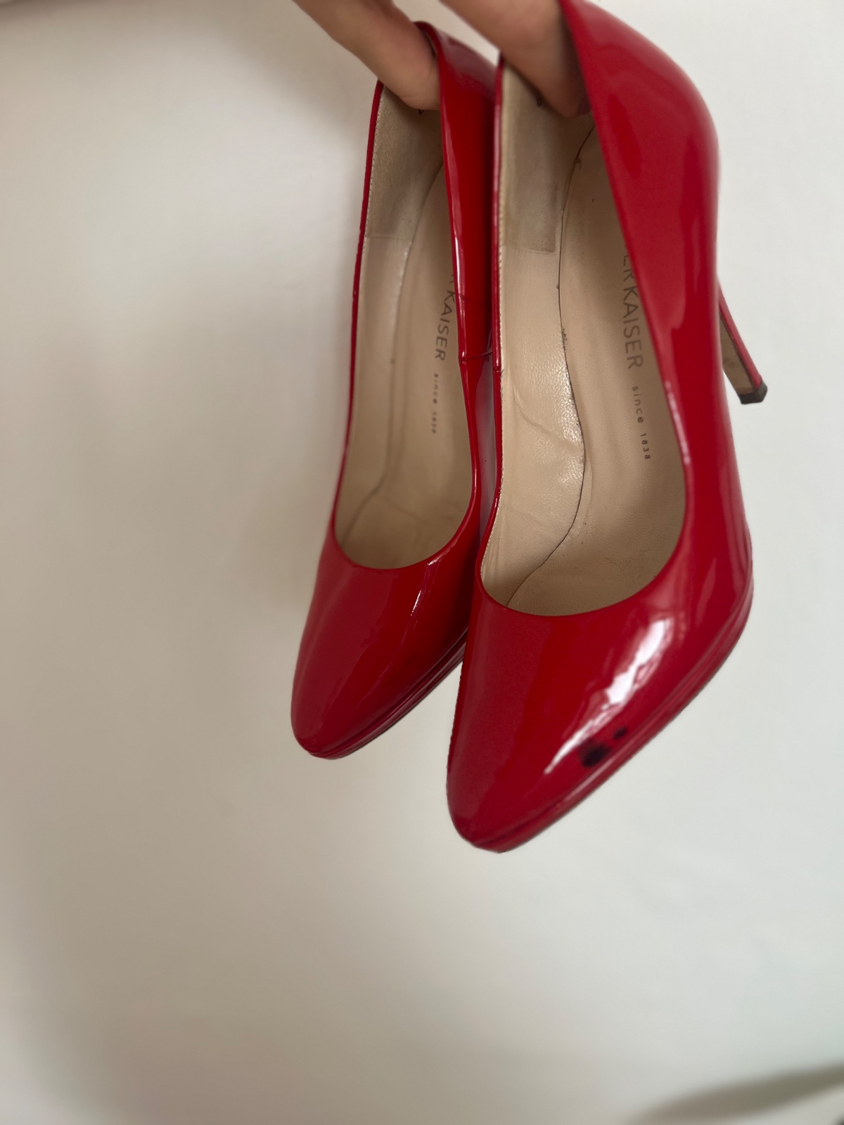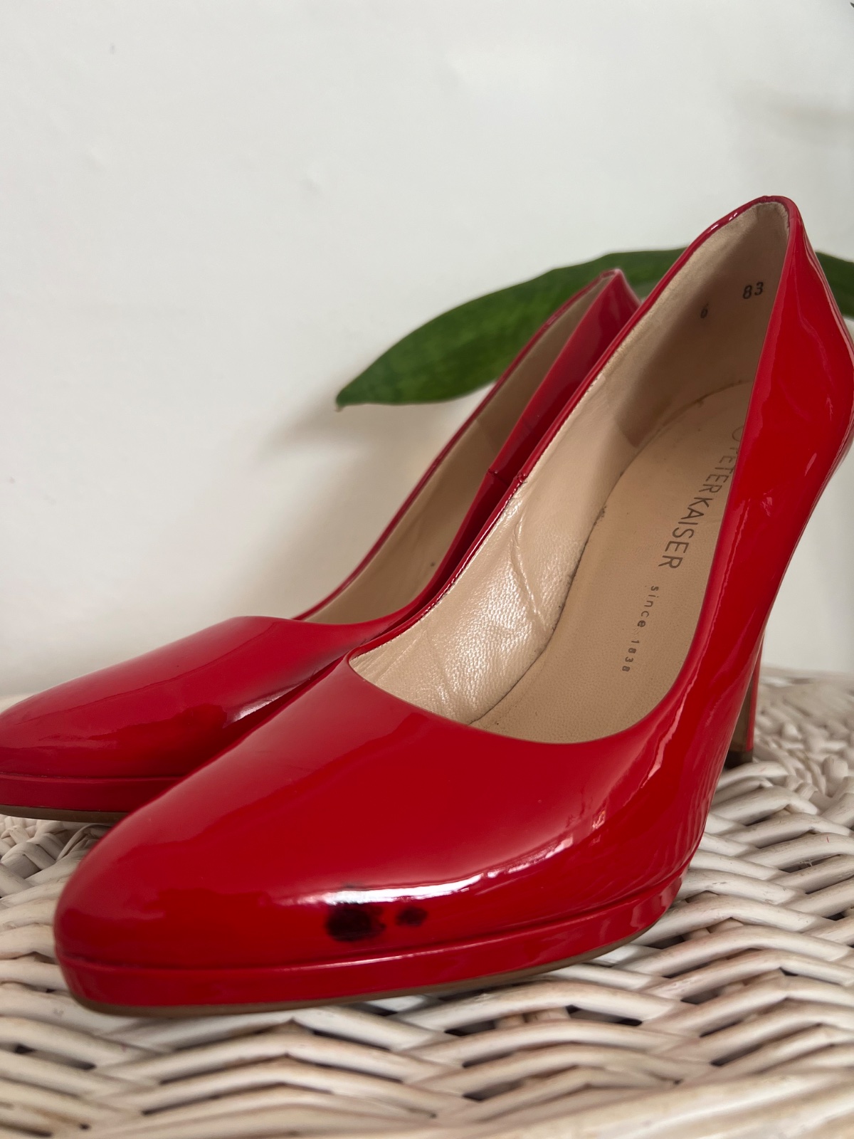 Lodičky sú kožené, veľmi pohodlné. NENOSENÉ. Žiaľ majú jednu chybičku, sú otlačené čiernou farbou, ktorá nejde dole :(, na nohe to nie je až tak strašne vidno. Určite by ešte mohli poslúžiť