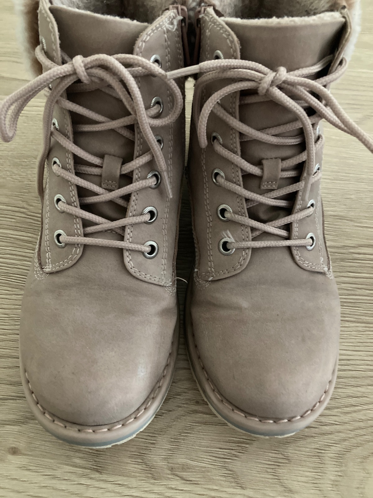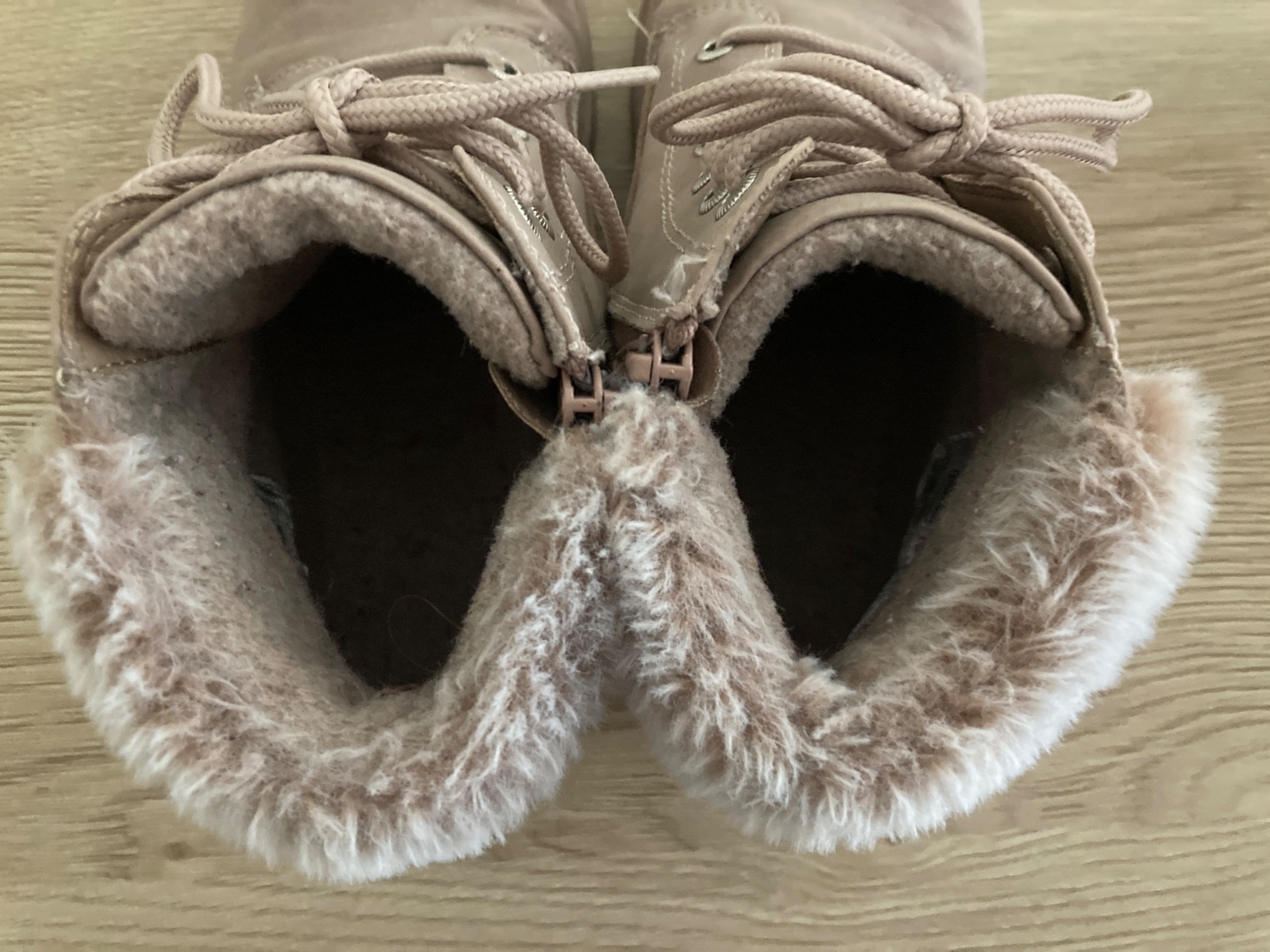 Bez poškodení, zachovalé, zapínanie na zips aj šnúrky, teplé, výška 15 cm, vnútorná dĺžka 23 cm.