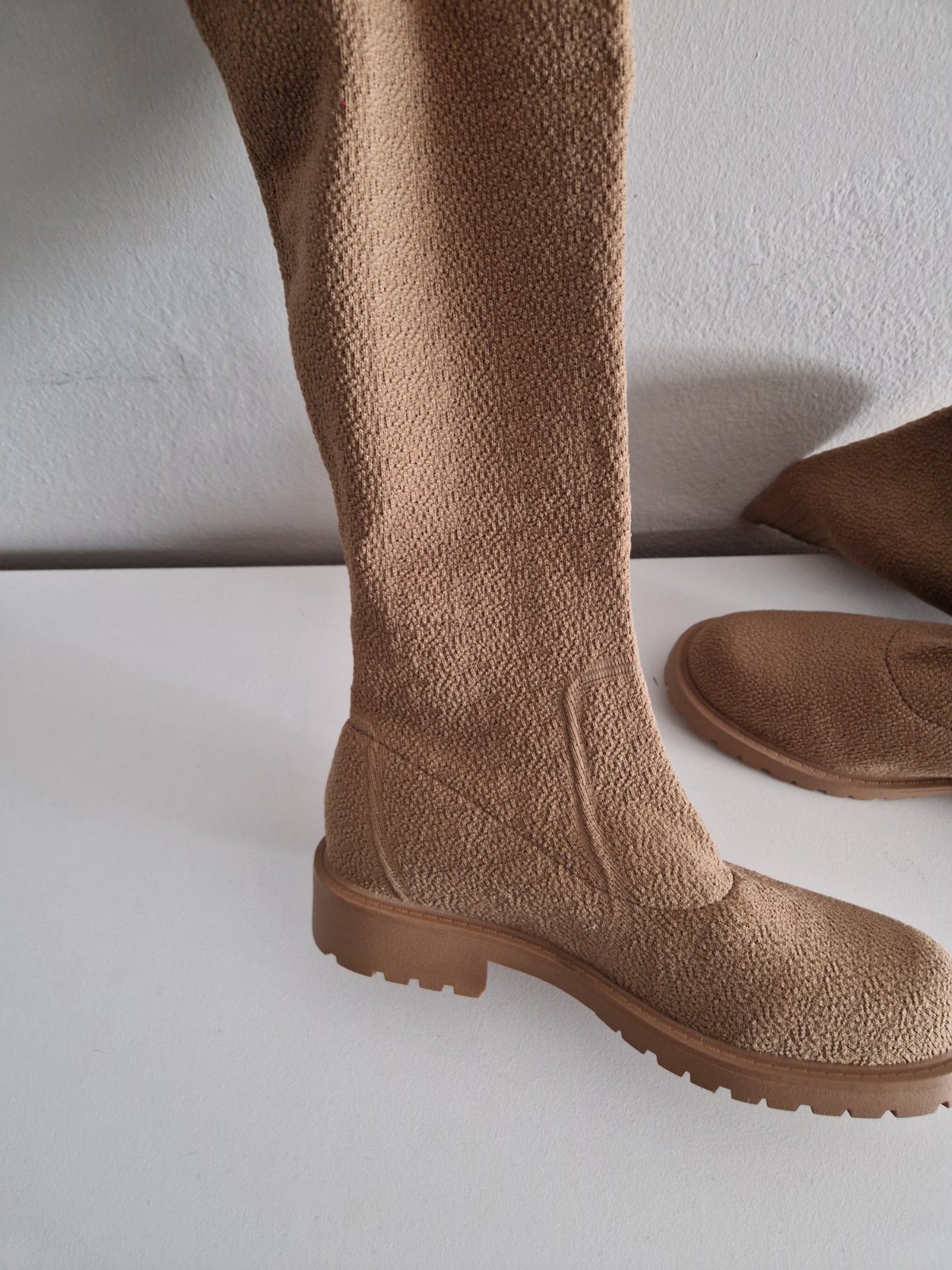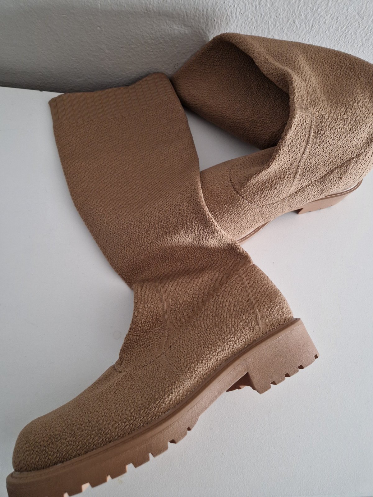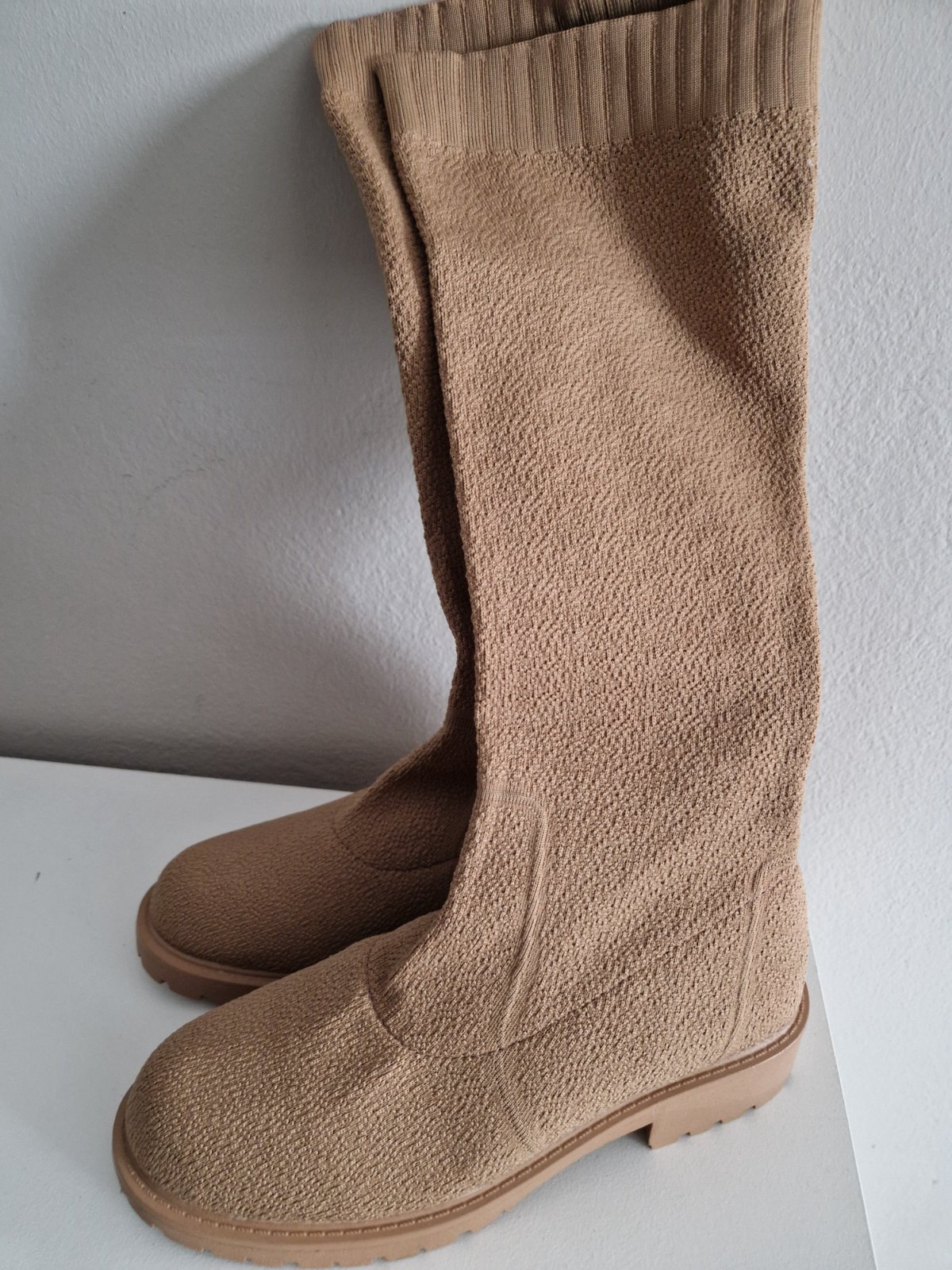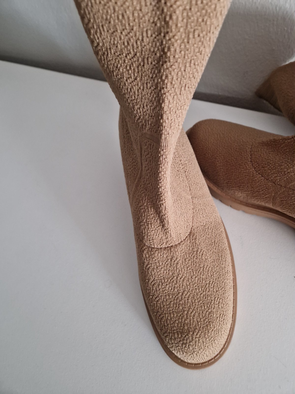AKCIA: 2+1 najlacnejší inzerát zadarmo! Nové prechodné strečové čižmy privezené z Holandska, pre mňa nevhodný dar. Nasúvacie, výška po kolená, farba bledohnedá/tmavobéžová. Veľkosť 40,vnútorná dĺžka 26cm. Klikni na profil, viac inzerátov v ponuke do 5€. Inzerát je aktuálny do zmazania.