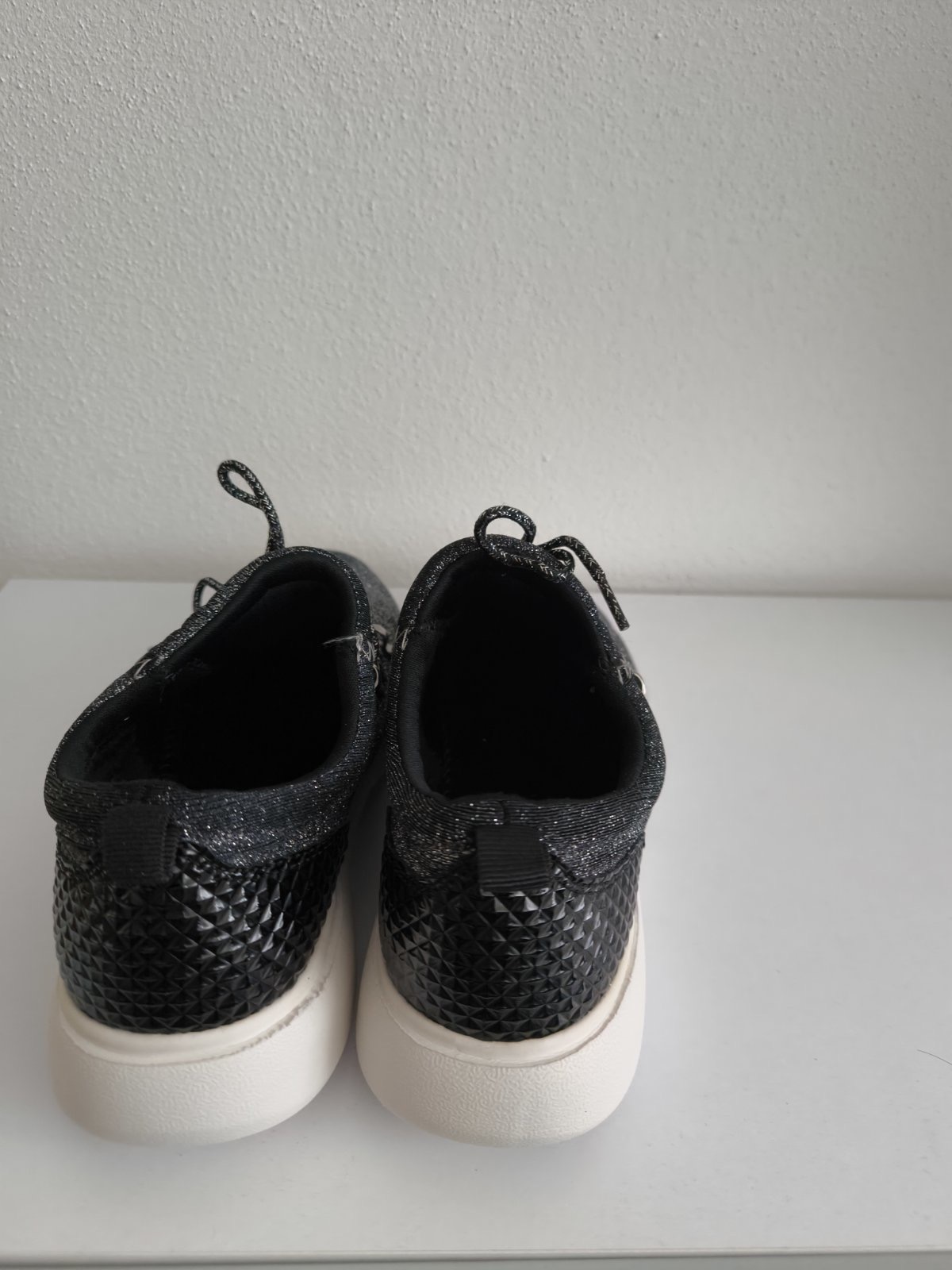 Uzasne clenkove tenisky. Uplne nove, len su bez visacky. Nachystala som ich synovi na nosenie, no nesadla mu velkost. Ale su krasne, super ukazu na nohe. Vnutorna dlzka sa tazsie meria, kedze vlozk...