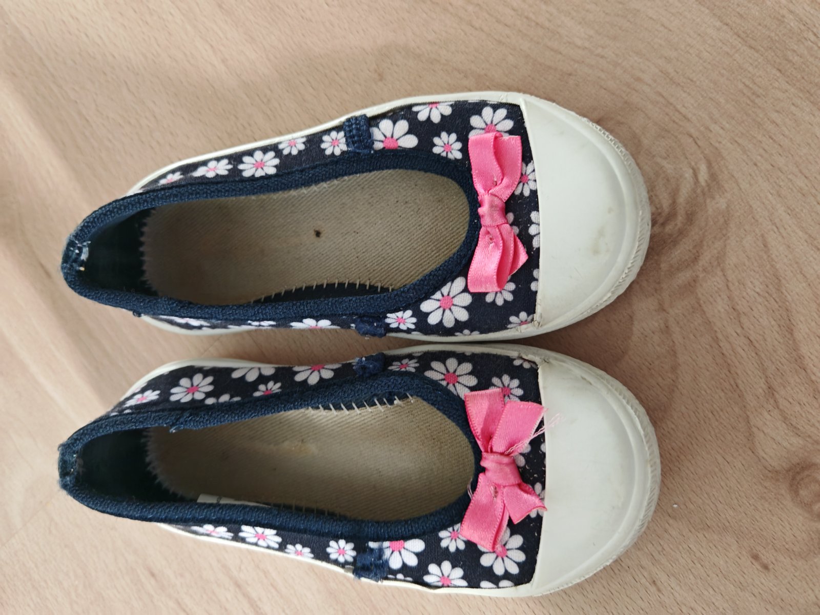 Tmavomodre balerinky mierne vybledli z dovodu vyprania su strasne pohodlne rychlo obuvatelne nie su vychodene vnutorna dlzka 15cm
