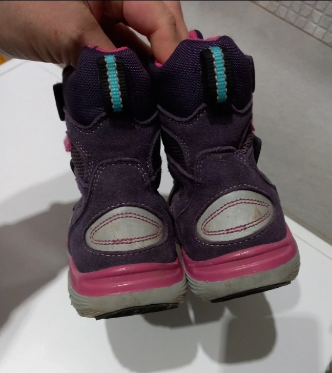 Parádne kožené nepremokavé čižmy s membránou. Dieťa si ich ľahko samo obuje vďaka nasúvaniu a suchým zipsom. Tmavofialové s ružovou, sivou, reflexné prvky pre bezpečnosť. Suché zipsy pevné. Kvalitná značka #elefanten30 vhodné do mesta aj do prírody, voľný čas. Aj ako snehule. Bežné známky nosenia, bez dier či vyšuchanej podrážky.