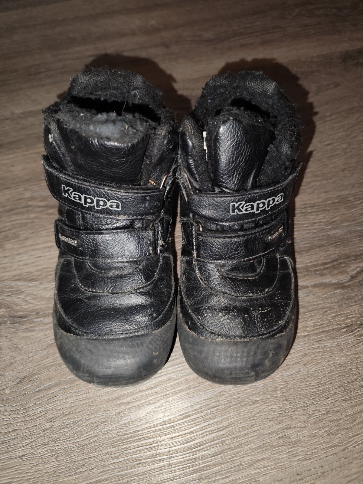 Čierne zimné zateplené topánky značky Kappa, veľkosť 30, vnútorná dĺžka cca 18,5 cm. Nosené jednu sezónu, sú v celkom dobrom stave, na vrchu začínajú byť trošku popraskané, viď. foto - preto je nižšia cena.