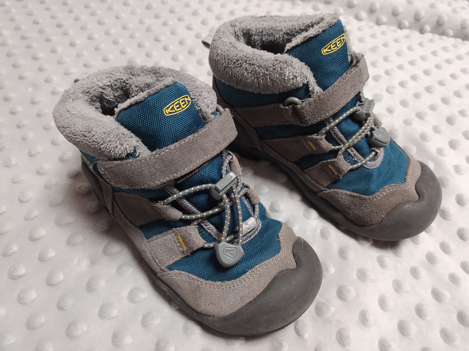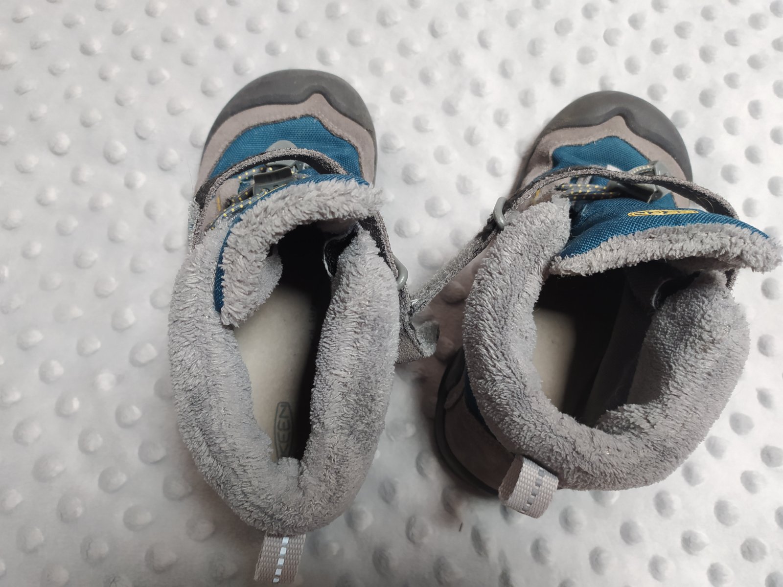 Detská treková obuv modrá, vo vnutri nie je flis, len na jazyku a na vrchu okolo členka. Supet stav, trochu šuchnuté na strane päty od odražadla. Použiteľné aj v teplejšej zime s vlnenou ponožkou. PC 52€