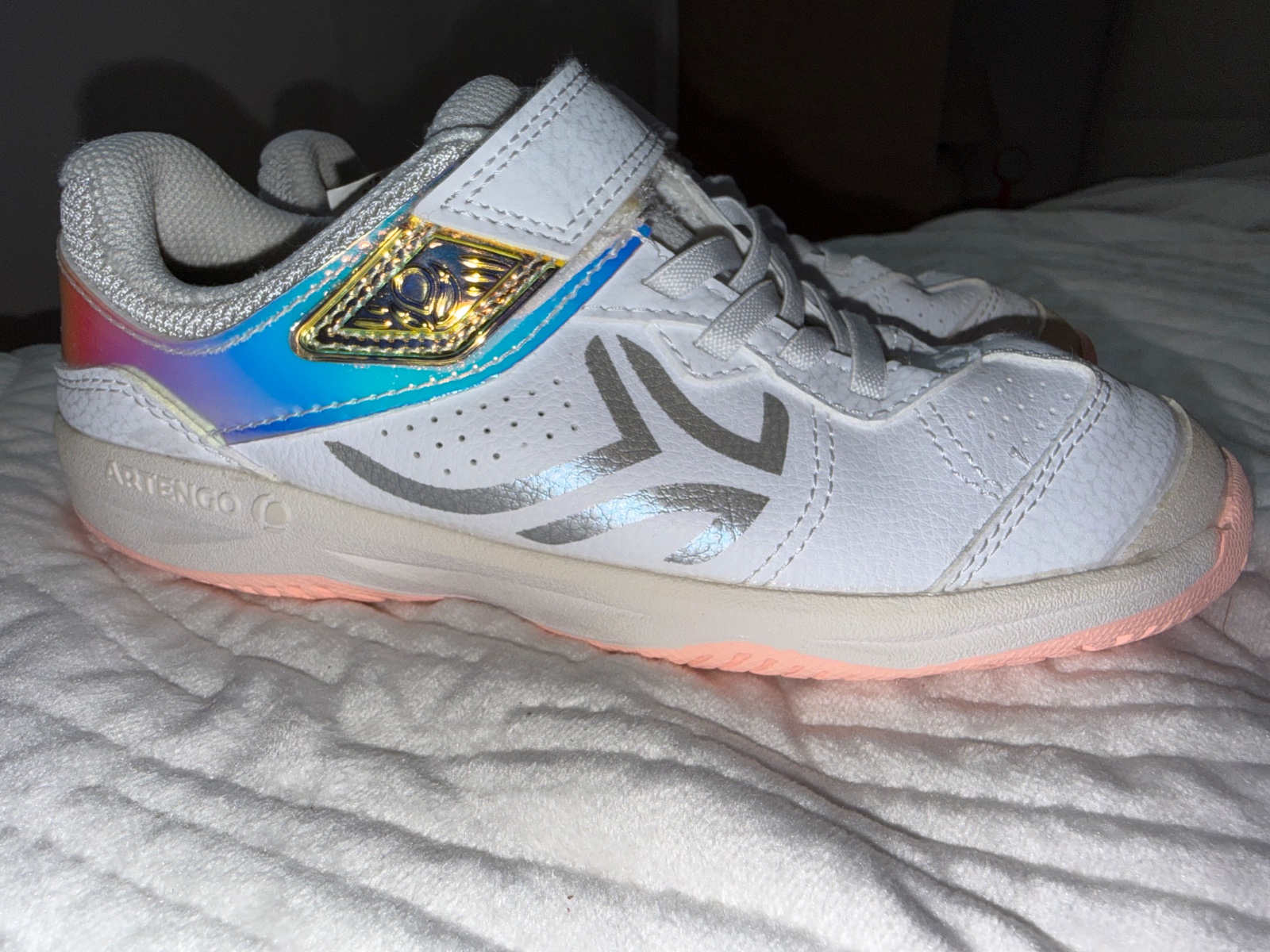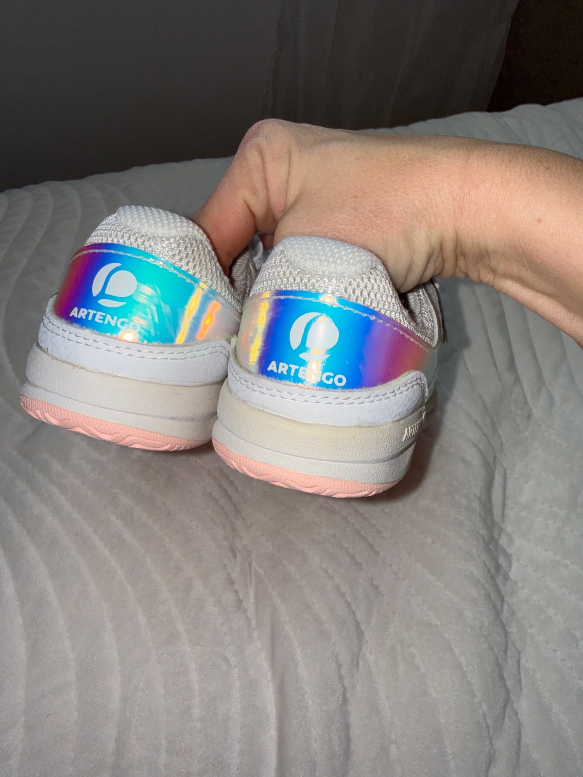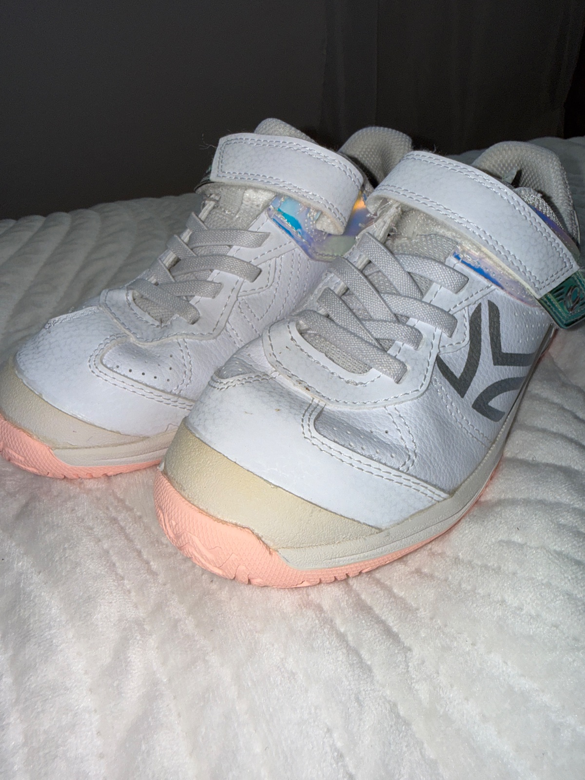 Krásne čistunke tenisky, bleda podrážka, nosene len na tanečnú. Top stav. Na nohu max 20cm, celková dĺžka stielky 21,5.