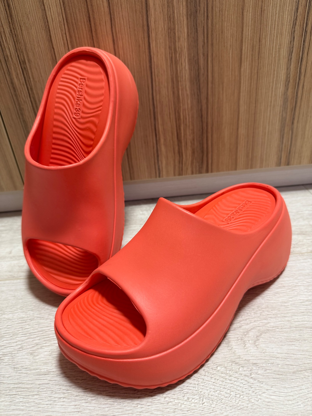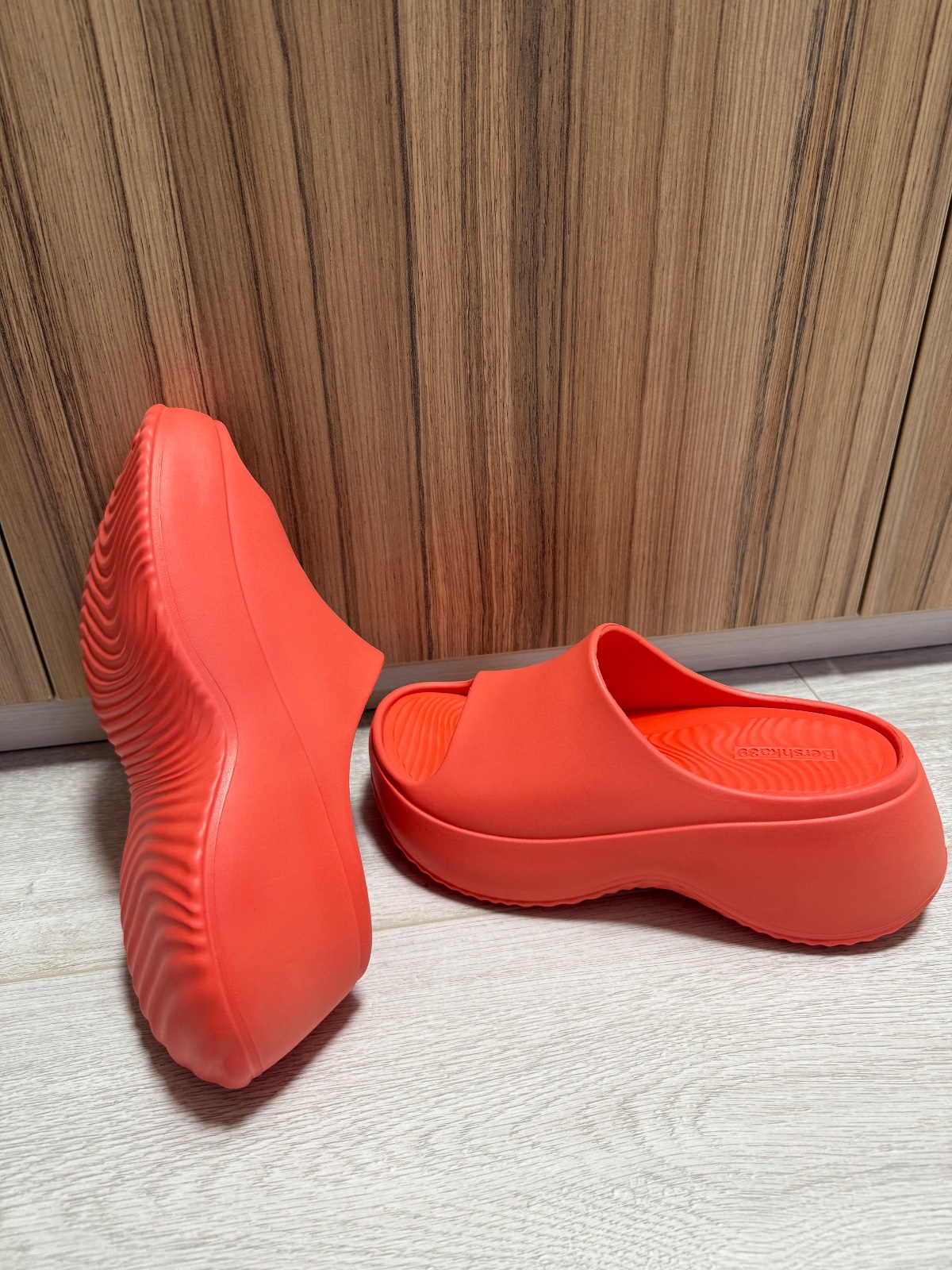 Predám šľapky na platforme, hit sezóny. Farba matná oranžovo-červená, 🔝 stav.