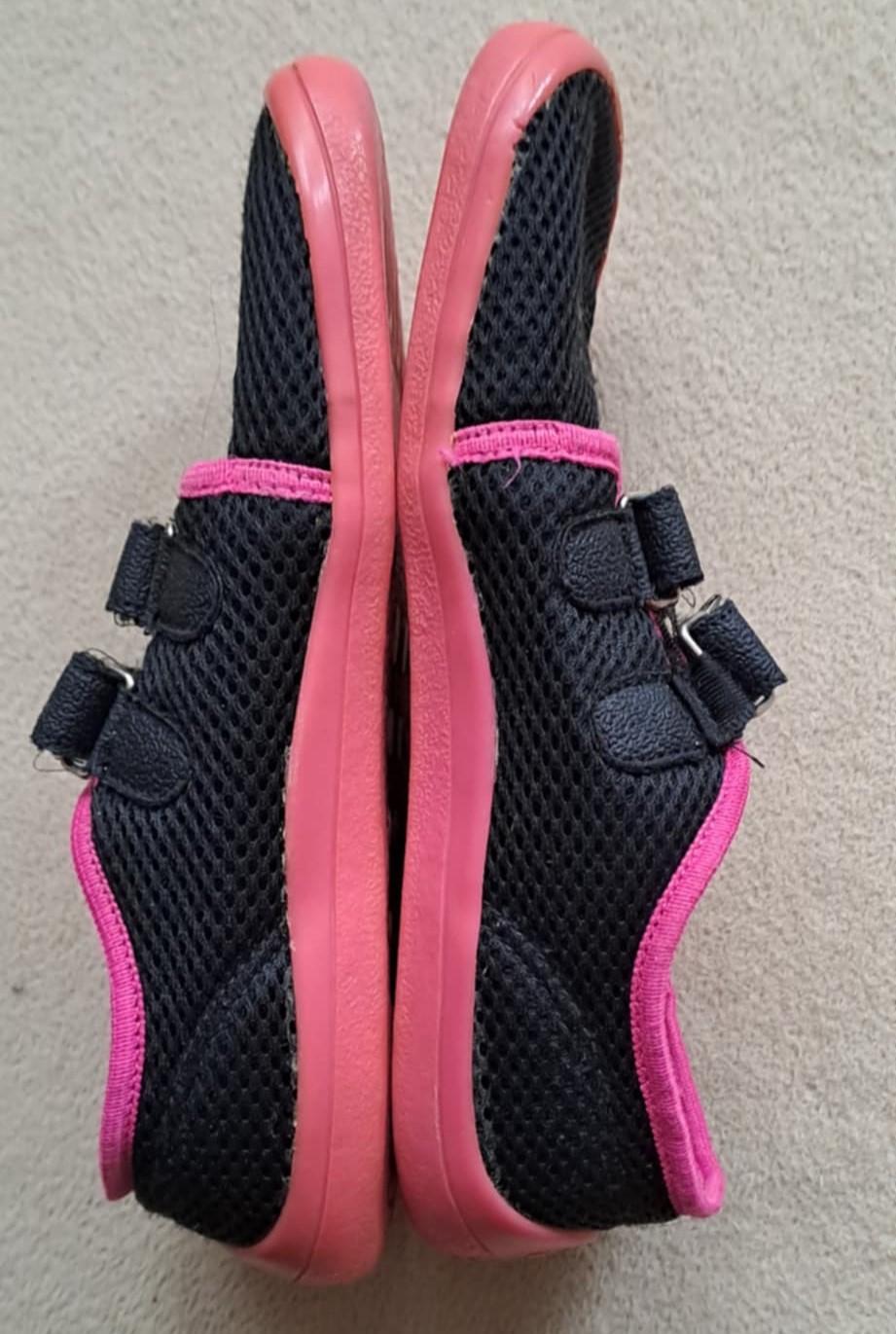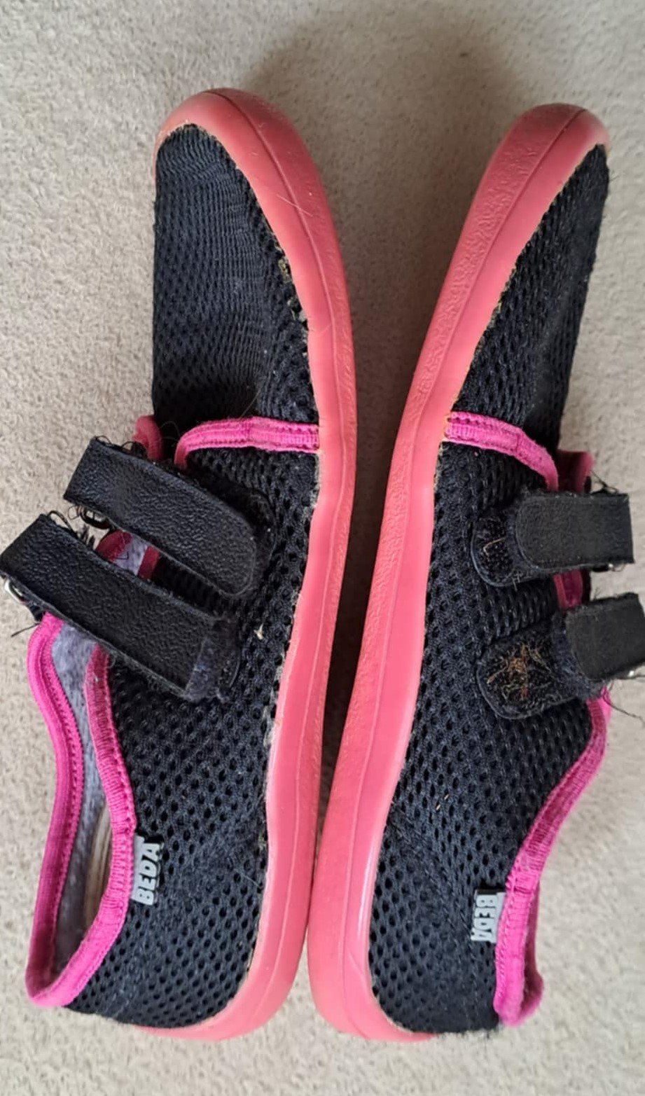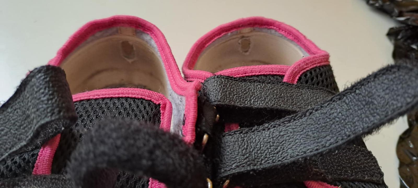 nosené, v zadnej časti topánky vyšúchané futro , vrchný materiál z priedušnej sieťoviny, pre priemerné až široké nohy