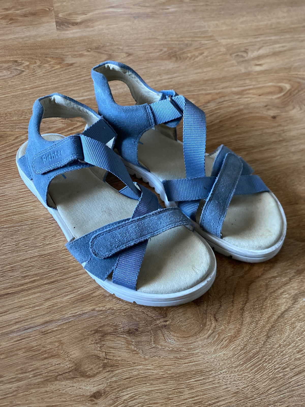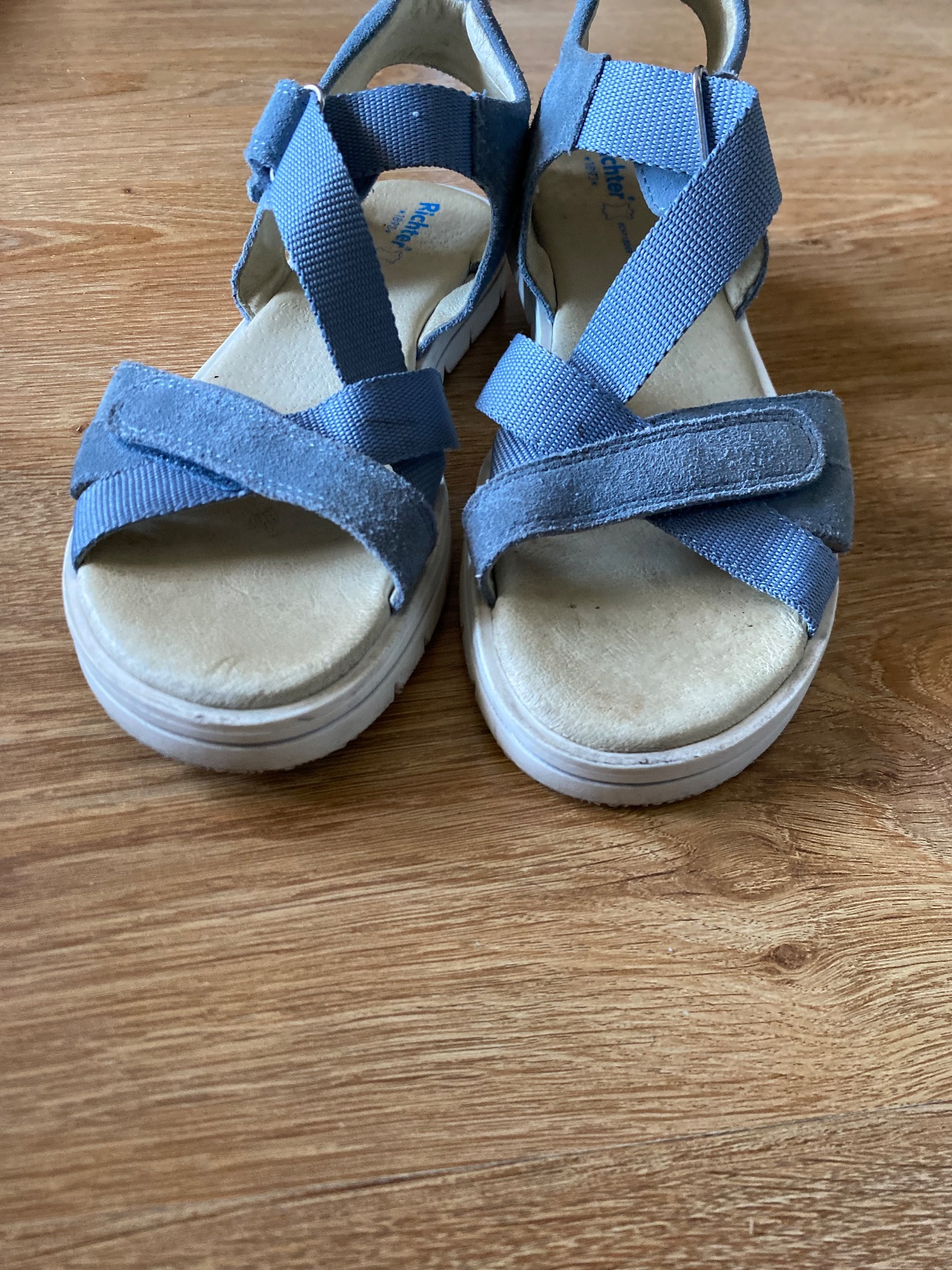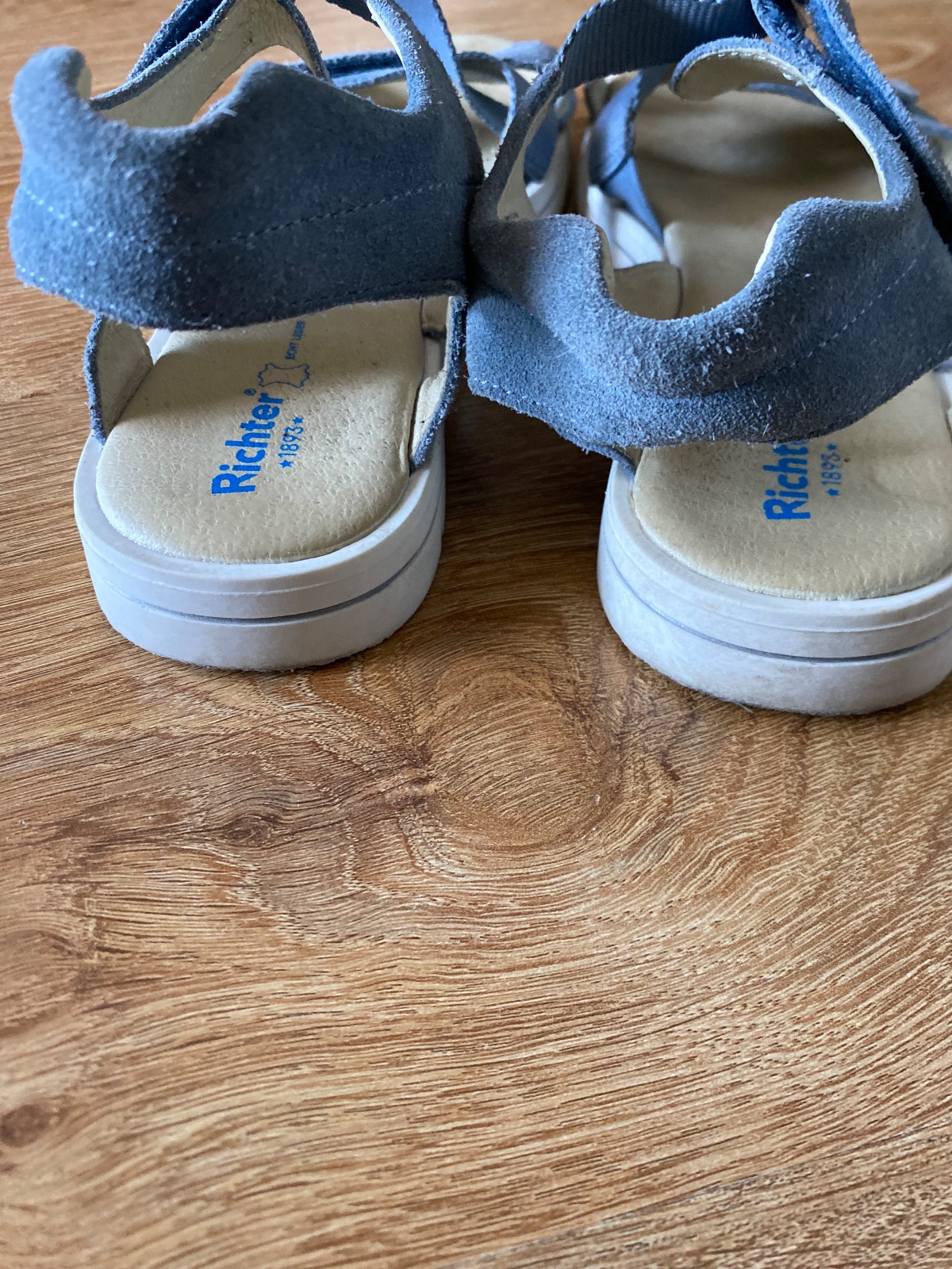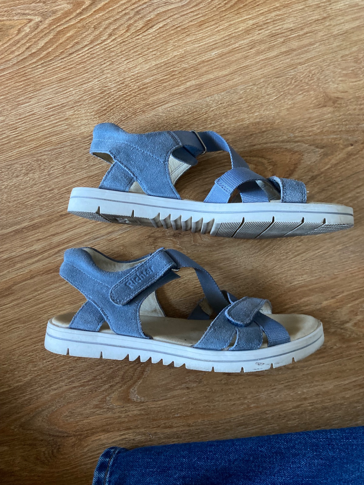 Krásne riflové sandálky, nosené iba mnou možno 5-6x boli obuté. Na opätku krásna výšivka. Žial si ich neviem už obuť. Na ptavej nohe mi operovali halux a nemožem mať takéto, inak by som ich nedala....