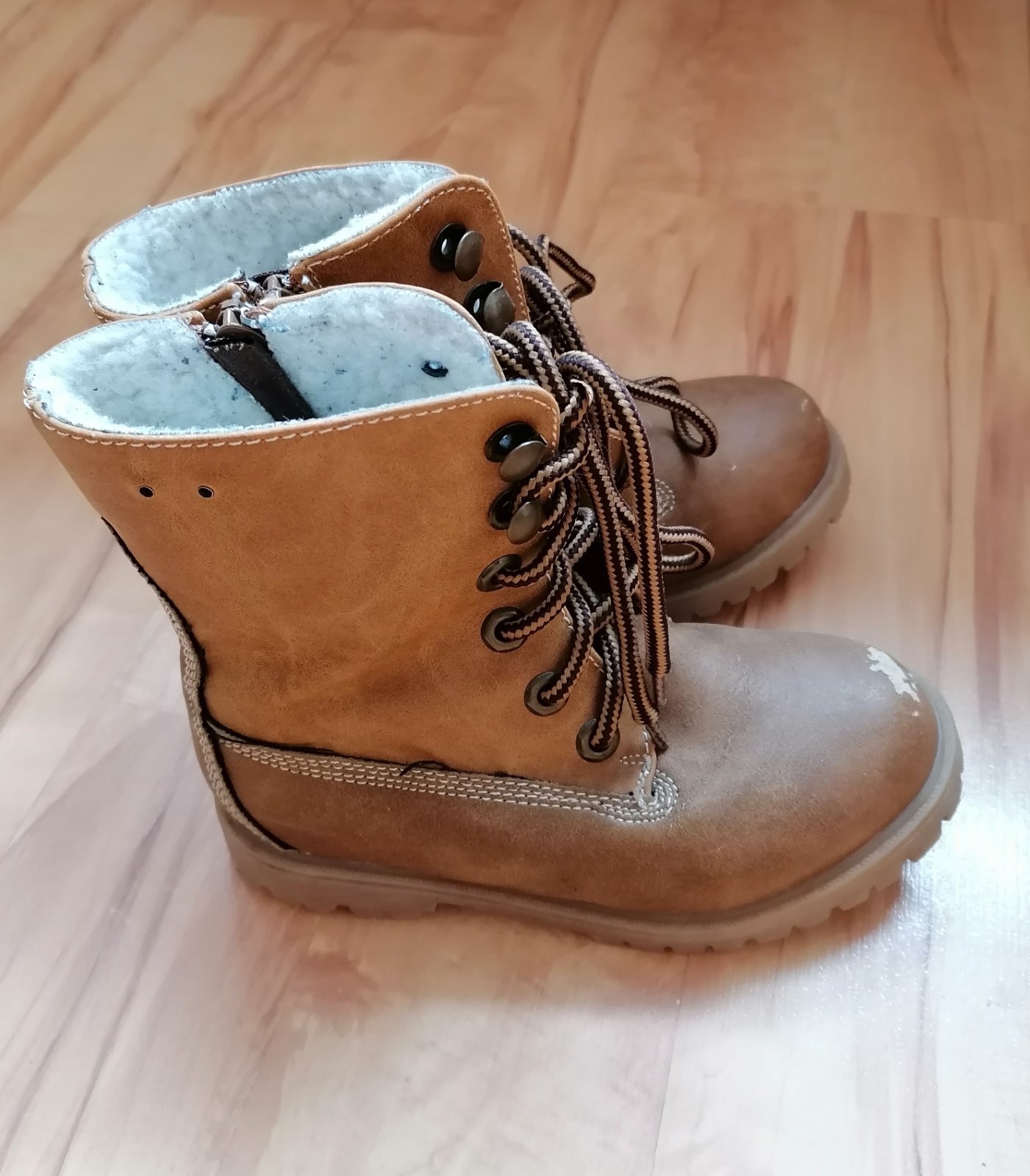 Oteplené vo vnútri. Špičky trochu oškreté, na boku chyba napís na jednej topánočke. Inak super. Vnútorná dĺžka 18cm.
