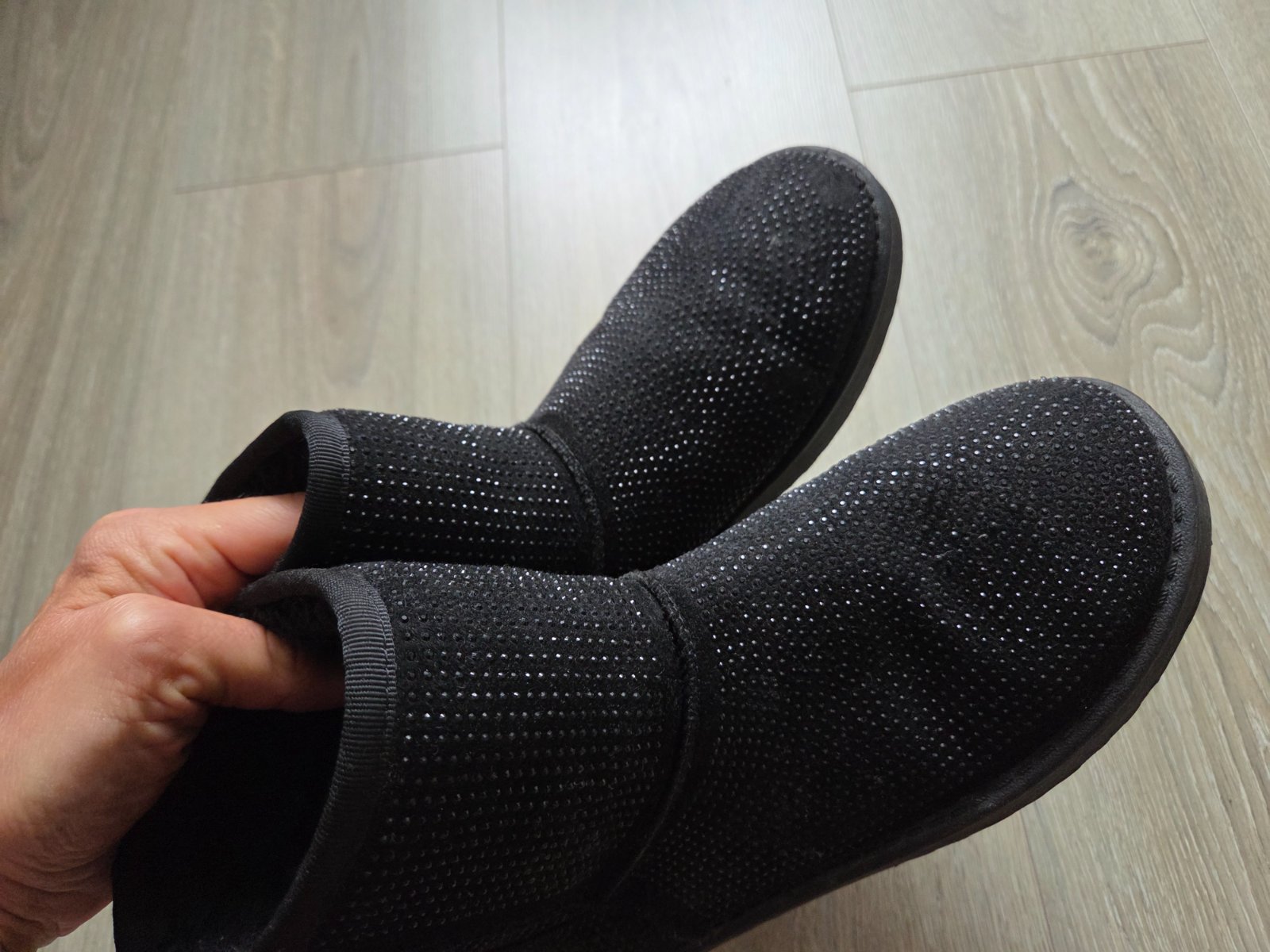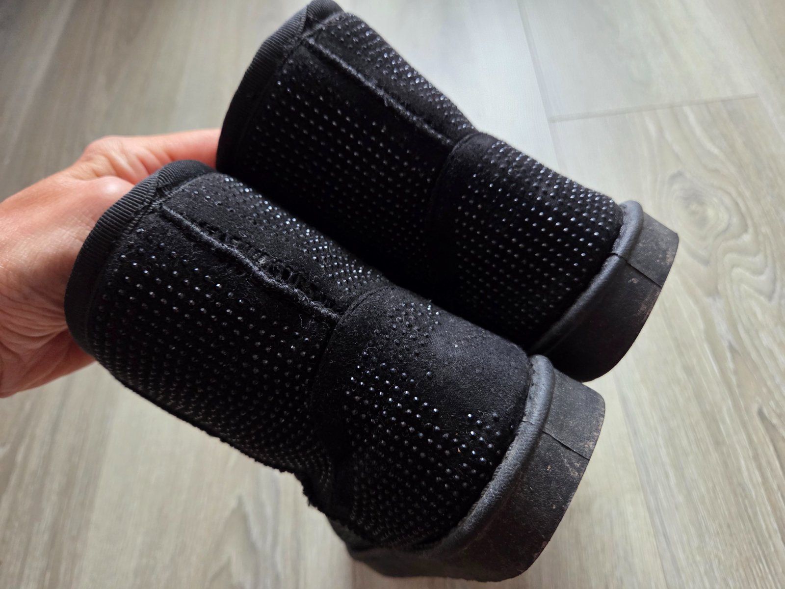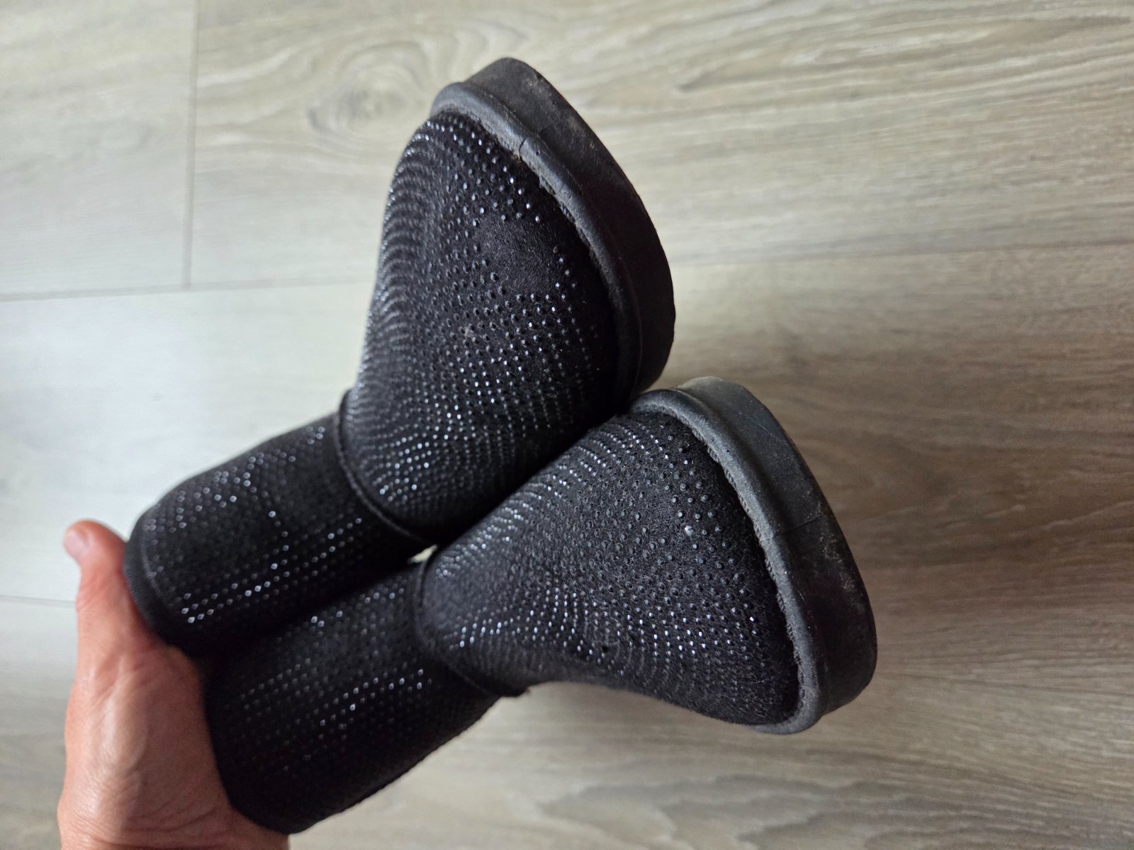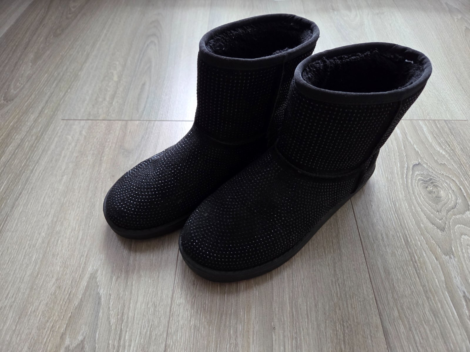 Malo využité, na ľavej čižmy vzadu na päte trochu natrhnuty sev, a trochu osuchane trblietky (vid posledná foto).