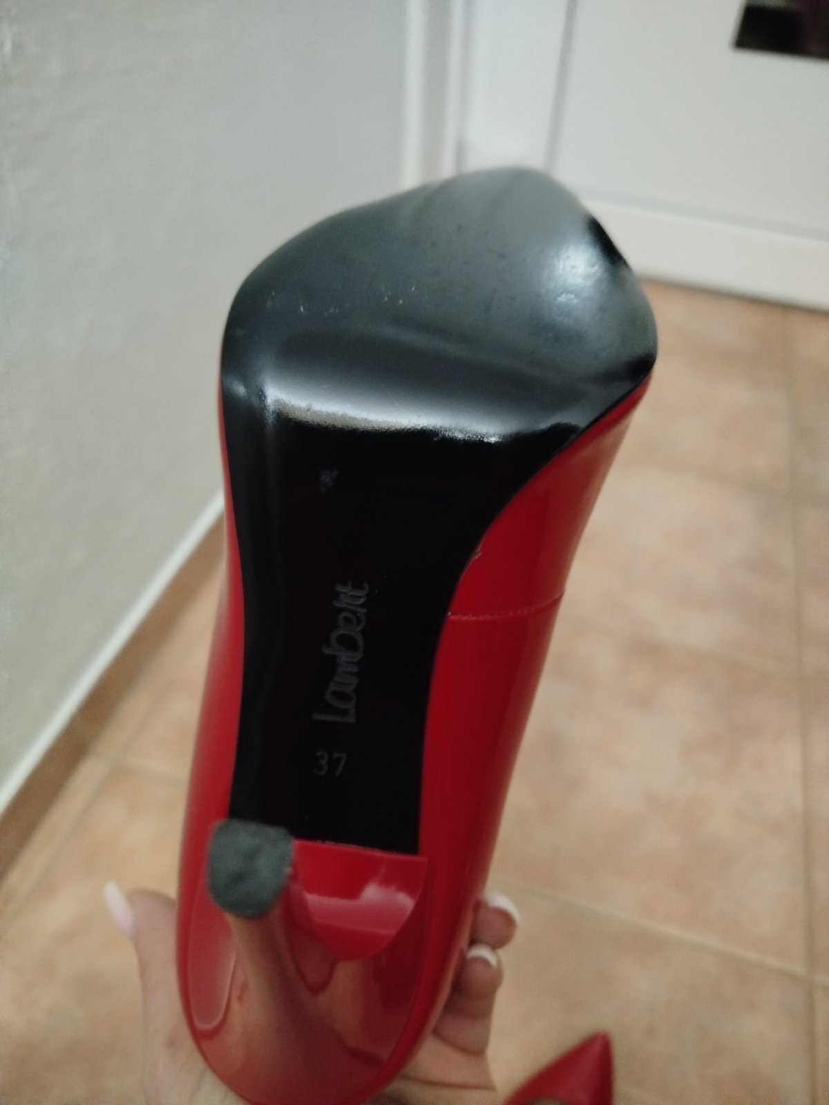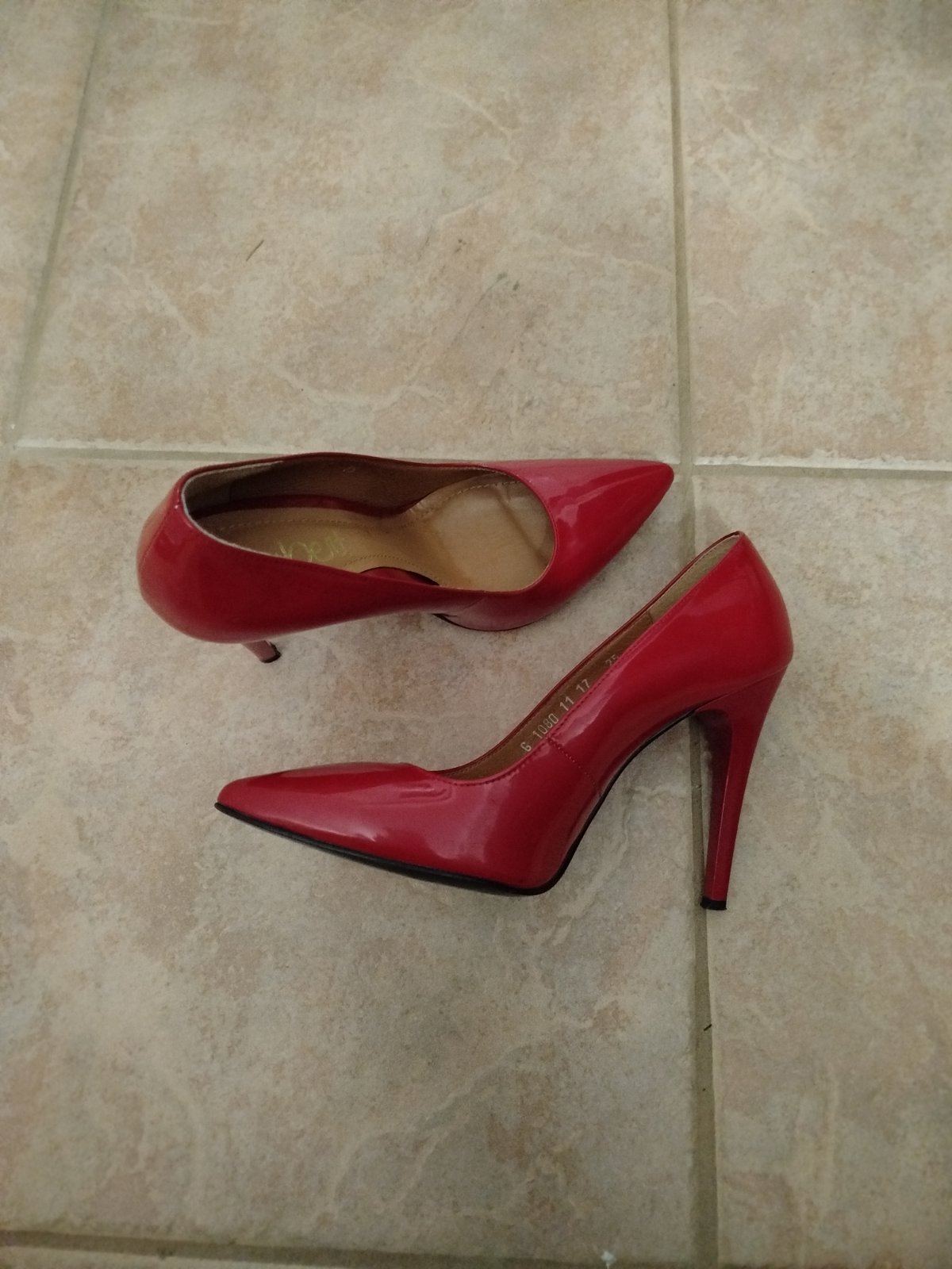 Predám len 1x použité, krásne, nepoškodené dámske červené lodičky veľkosť "36". Opätok je lakovaný, výška 9cm. Lodičky sú veľmi pohodlné.