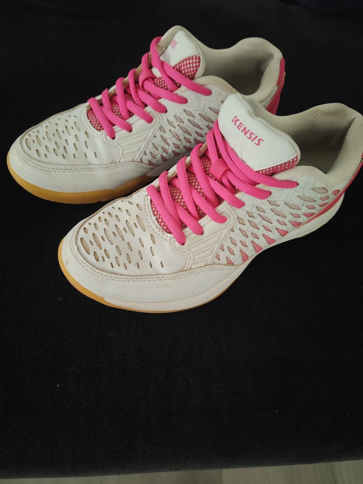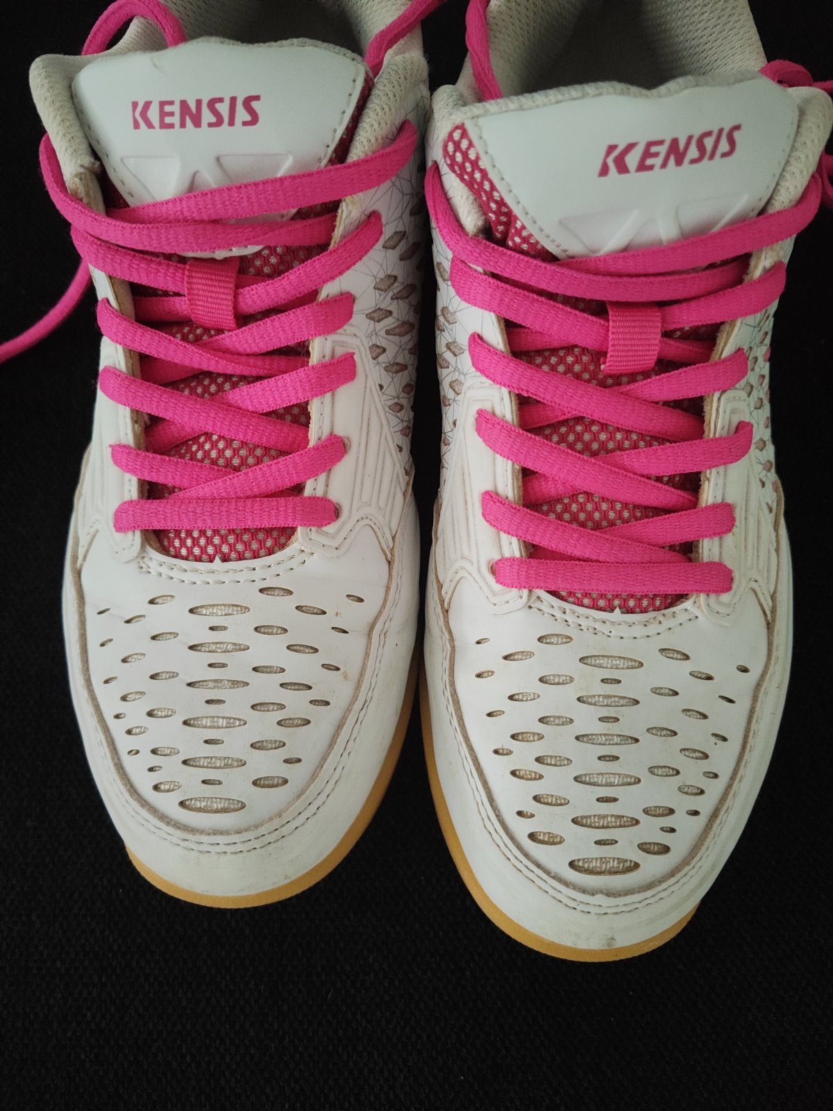 Predám botasky - halovky, ružovobielej farby, bežné známky používania na hodine TV, veľkosť 37, zn. Kensis