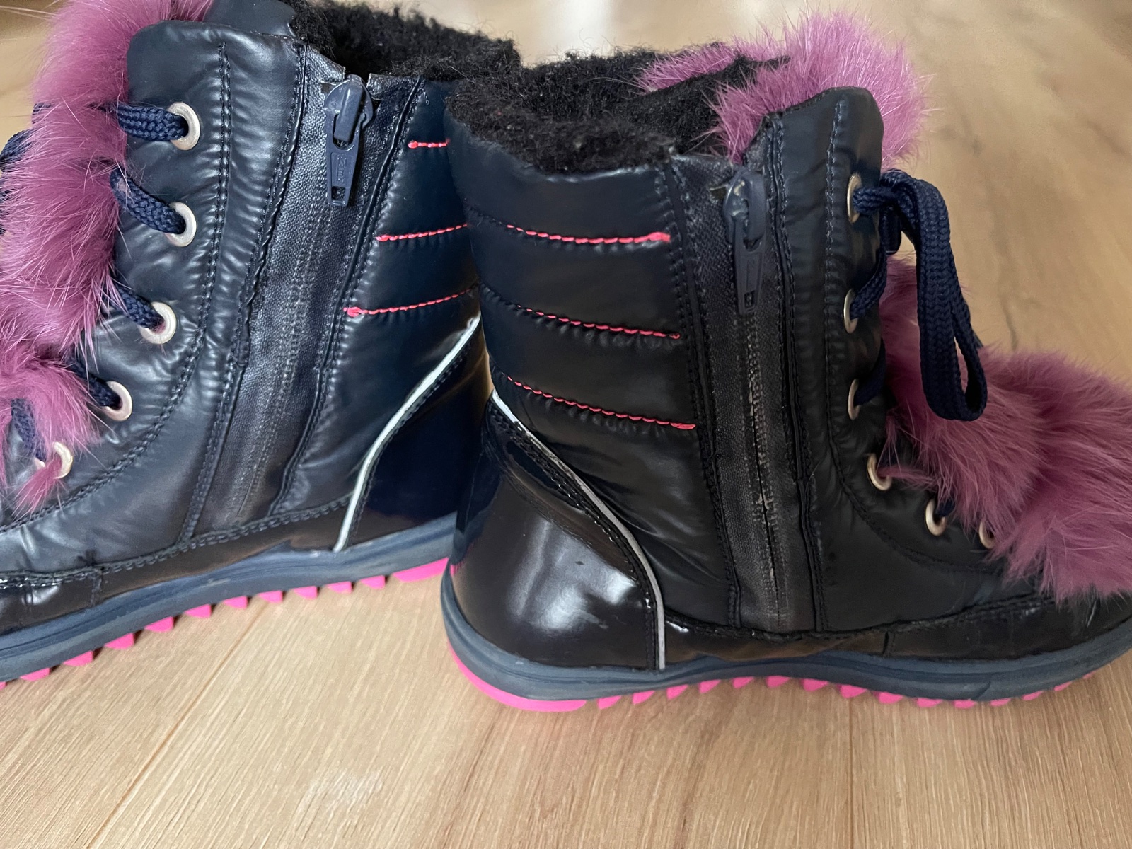 Sú veľmi teple, ľahko sa obúvajú, v snehu sa nešmýkajú, hodia sa k sukni aj k rifličkám. Kožušinu je možné odopnúť (nafotené). Kupované v predajni Wojas, pôvodná cena 89€