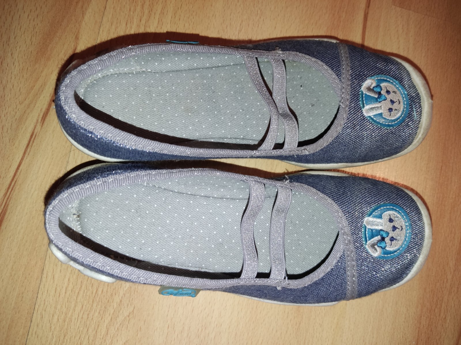Dievčenské balerínky vhodné aj ako prezuvky. Model Blanca - Priedušné plátené prevedenie. - Ľahké a pohodlné. - Protišmyková podrážka. - Podrážka je odvetraná, zaisťuje priedušnosť a odvod nadbytoč...
