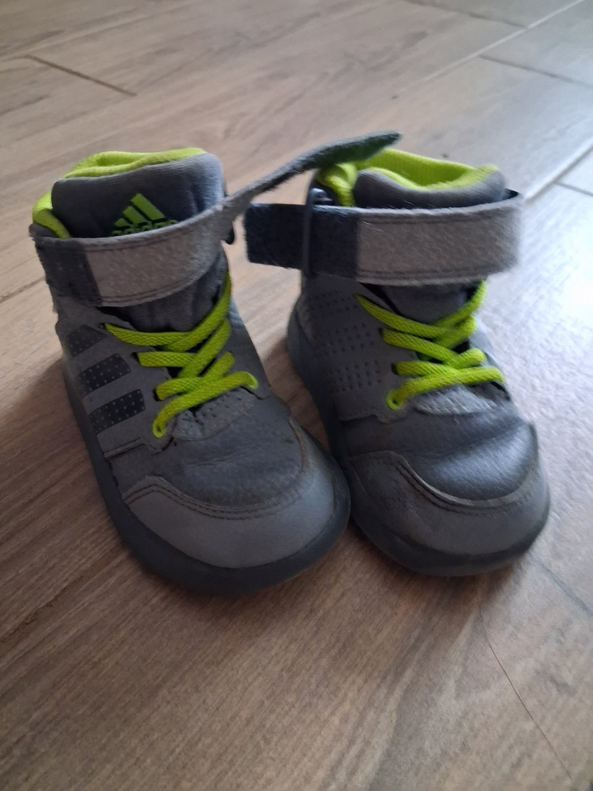 Kožené členkové topánočky značky adidas. Veľkosť UK 5 1/2. Vnútorná dĺžka 14 cm. Vhodné pre nožičku 13,5 cm. Topánočky sme radi nosili.Na ľavej sa trochu odliepa špička. Inak sú v dobrom používanom...