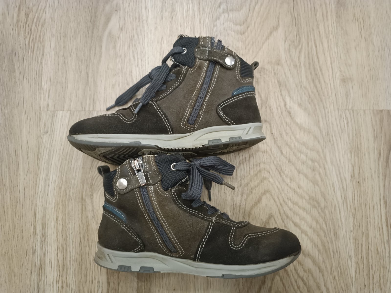 Velmi dobrý stav, kožené, praktické zapínanie aj na boku na zips, na jar/jesen, na spicke trosku zodrate z gumicky - na nosenie nema ziaden vplyv. Uvedená velkost 30, ale sadnu na nozku velkosti 29.