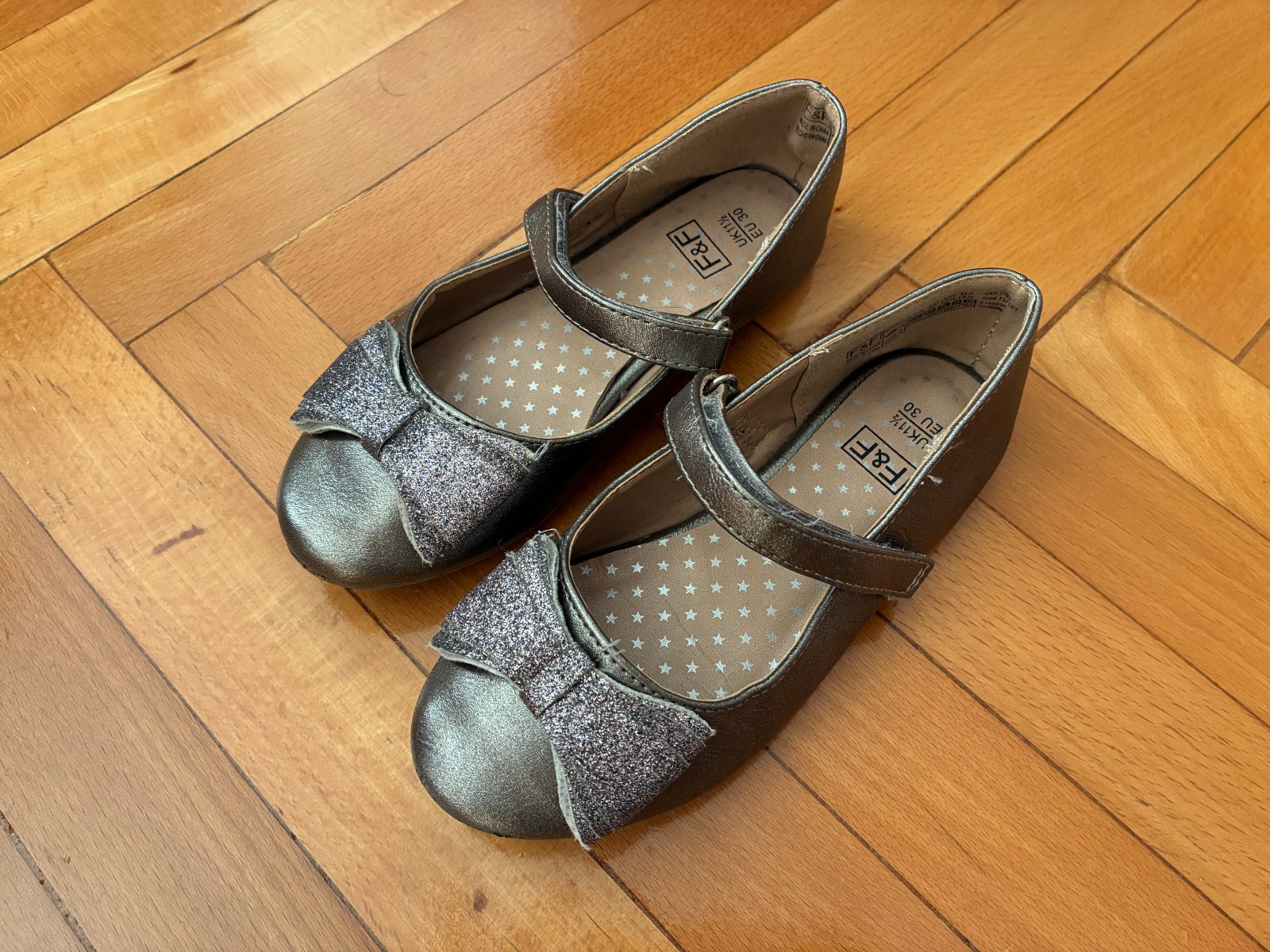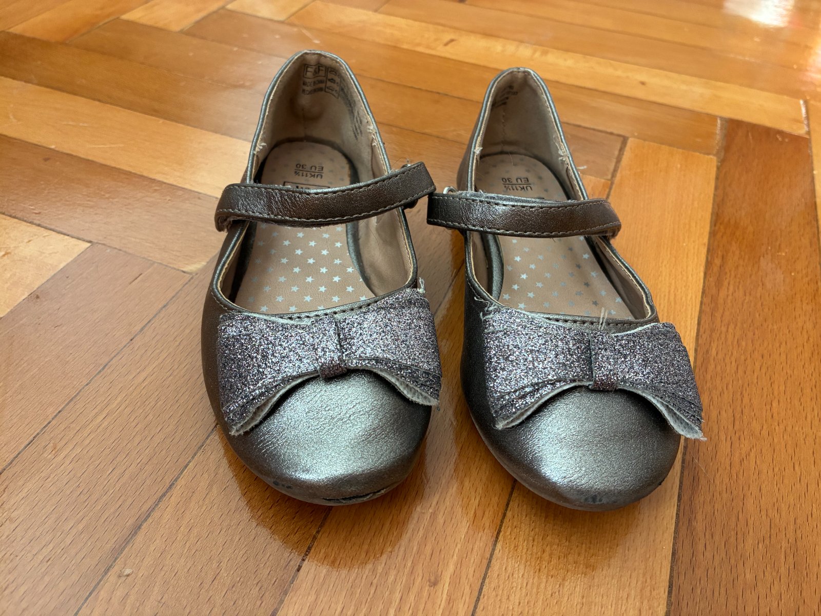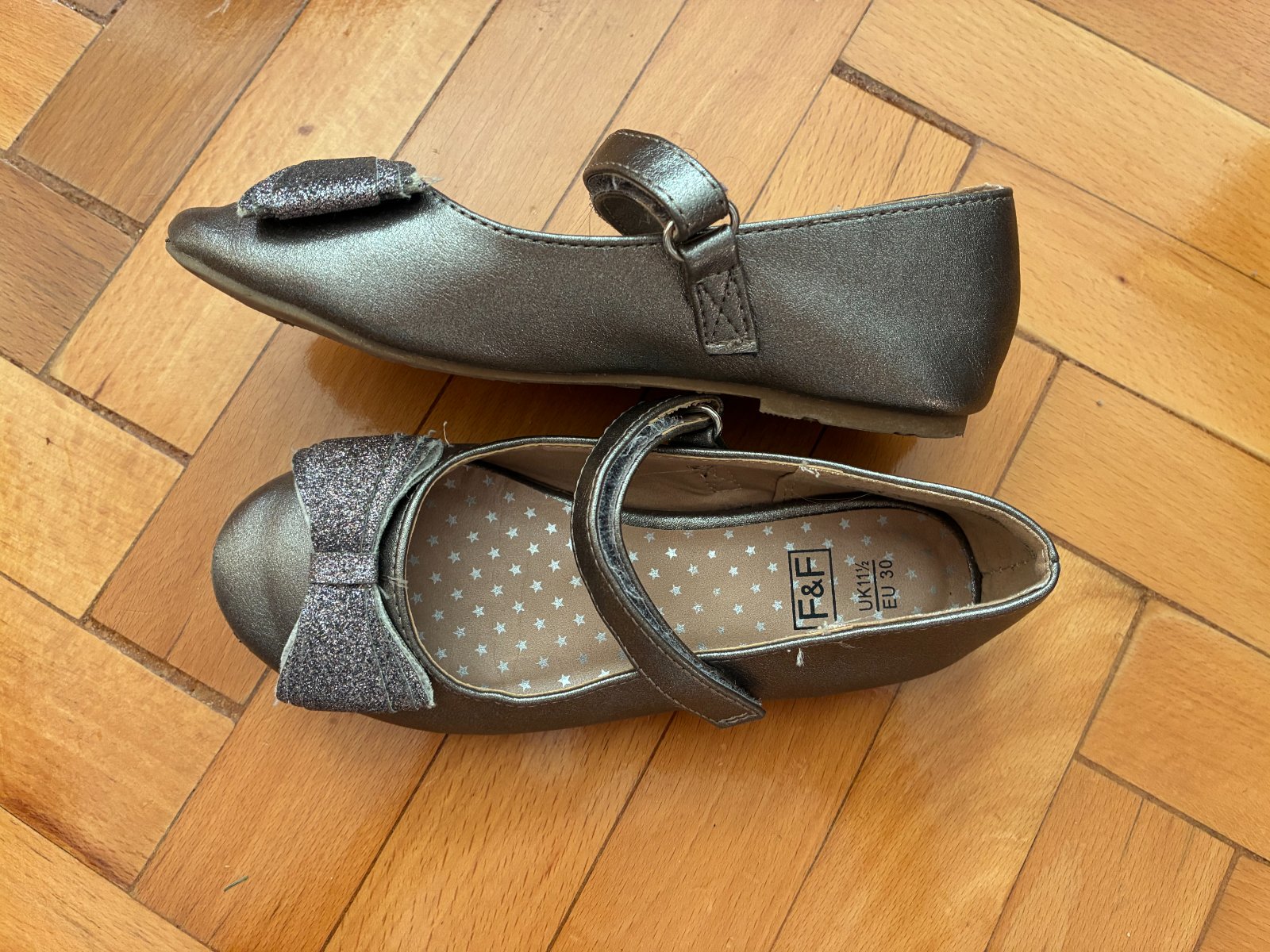 Pekne sandalky s trblietavou maslickou vhodne k suknicke, satam, vyborny noseny stav, vpredu malicko suchnute, nevidiet velmi, zapinanie na suchy zips, neschodene.