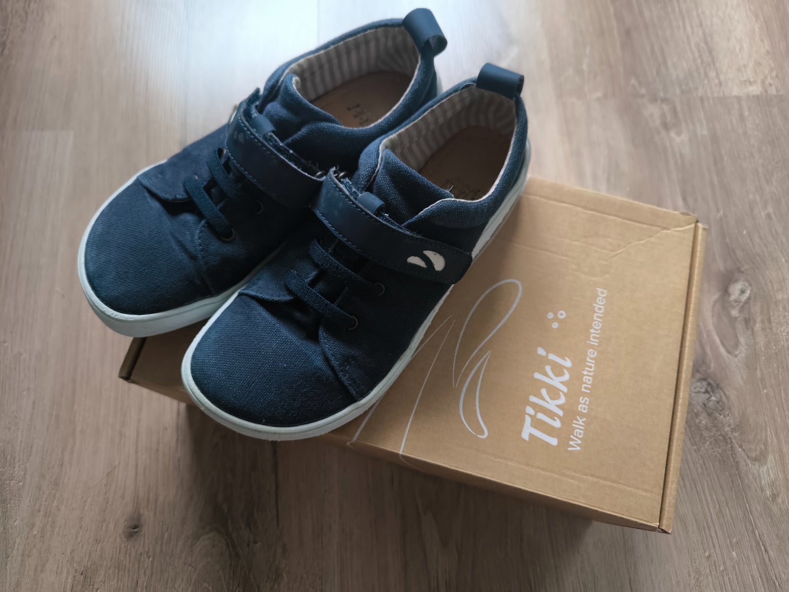 Nosené barefoot tenisky vo veľkosti 32 značky Tikki. Sú vo veľmi peknom stave, viď foto. Podrážka nezošlapaná. Nosené len na telesnú.