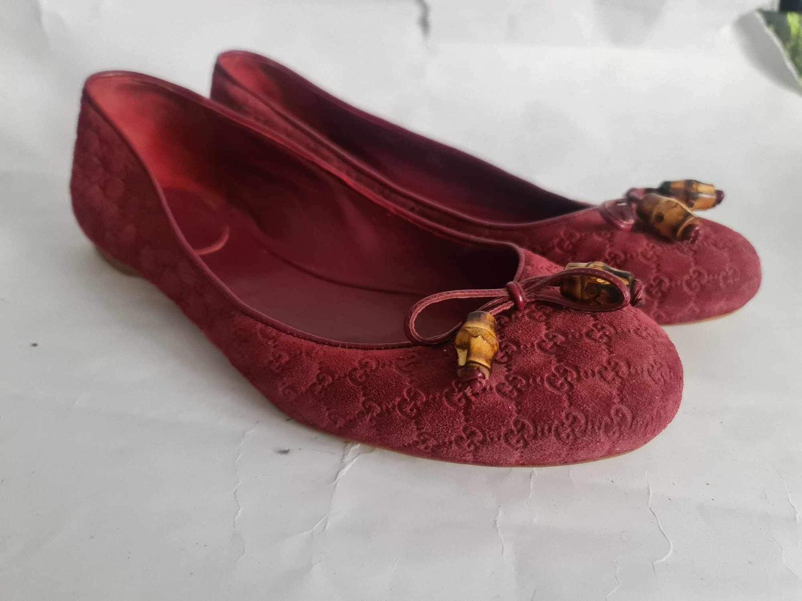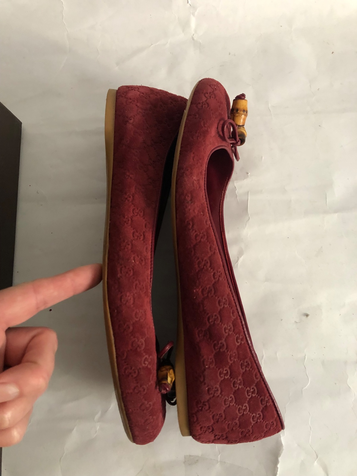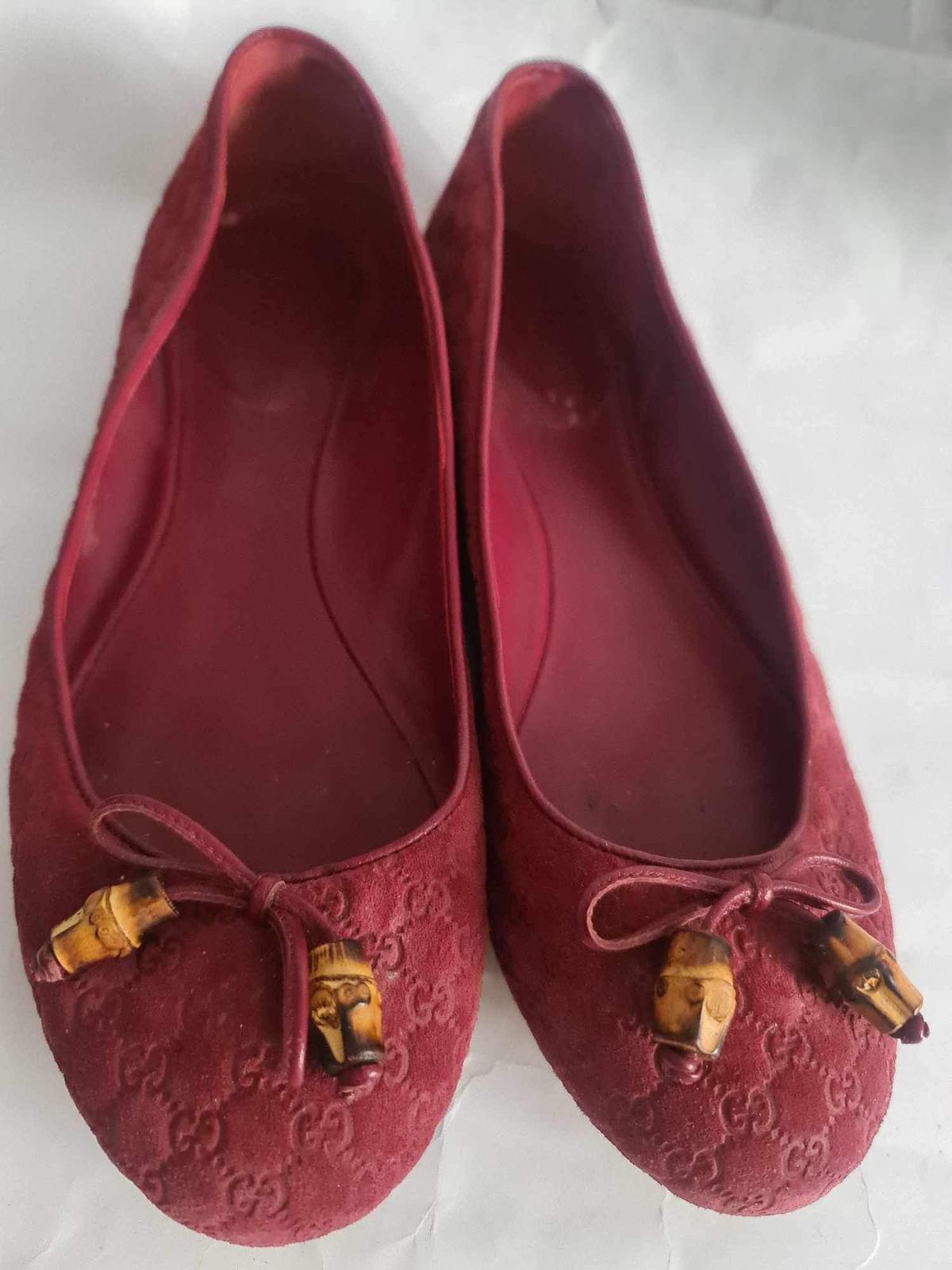Gucci guccissima bamboo baleriny topanky kozene Malo nosene. Retail 362€, original skatula, farba burgundska, velkost 371/2