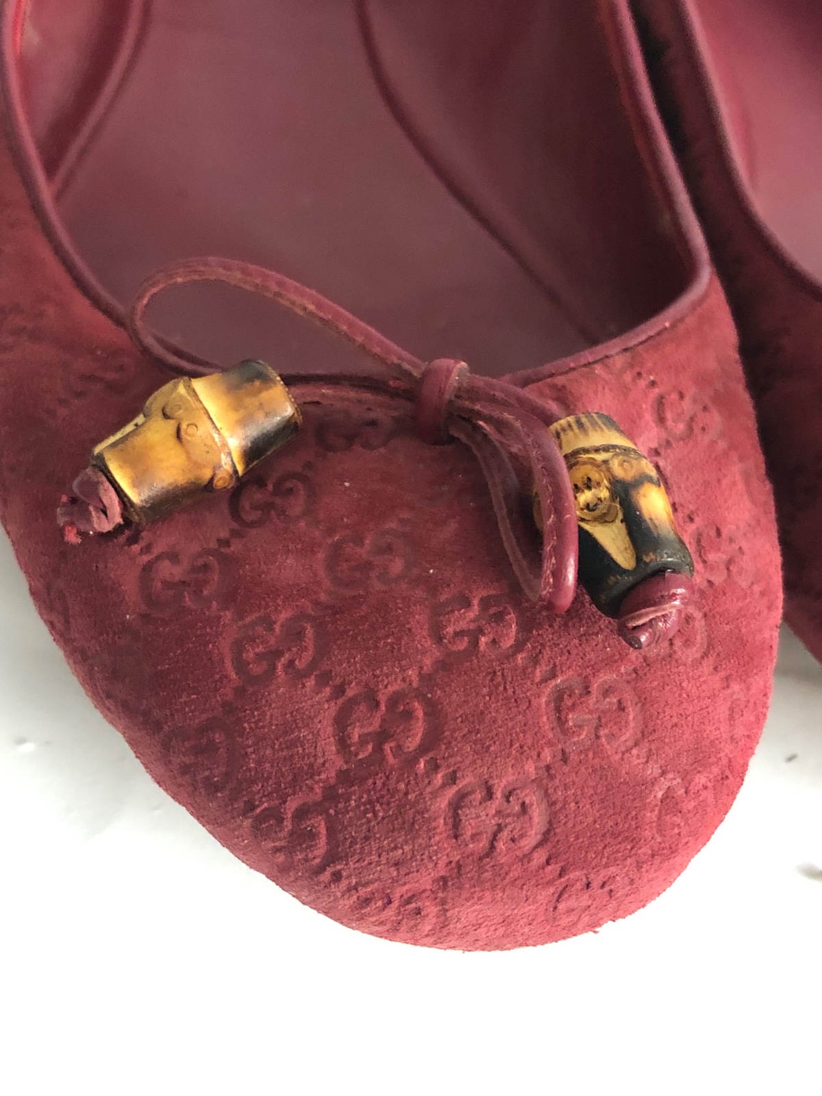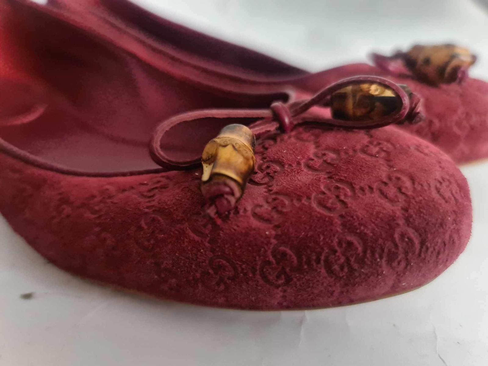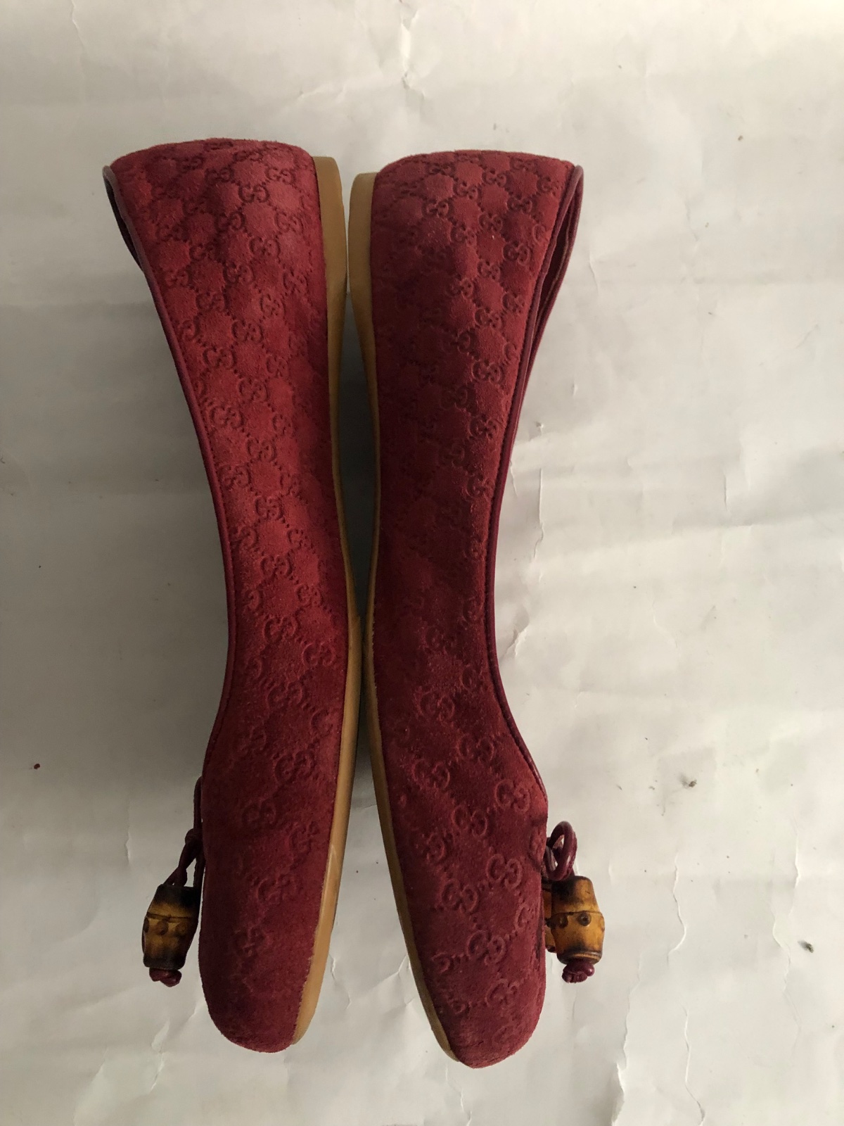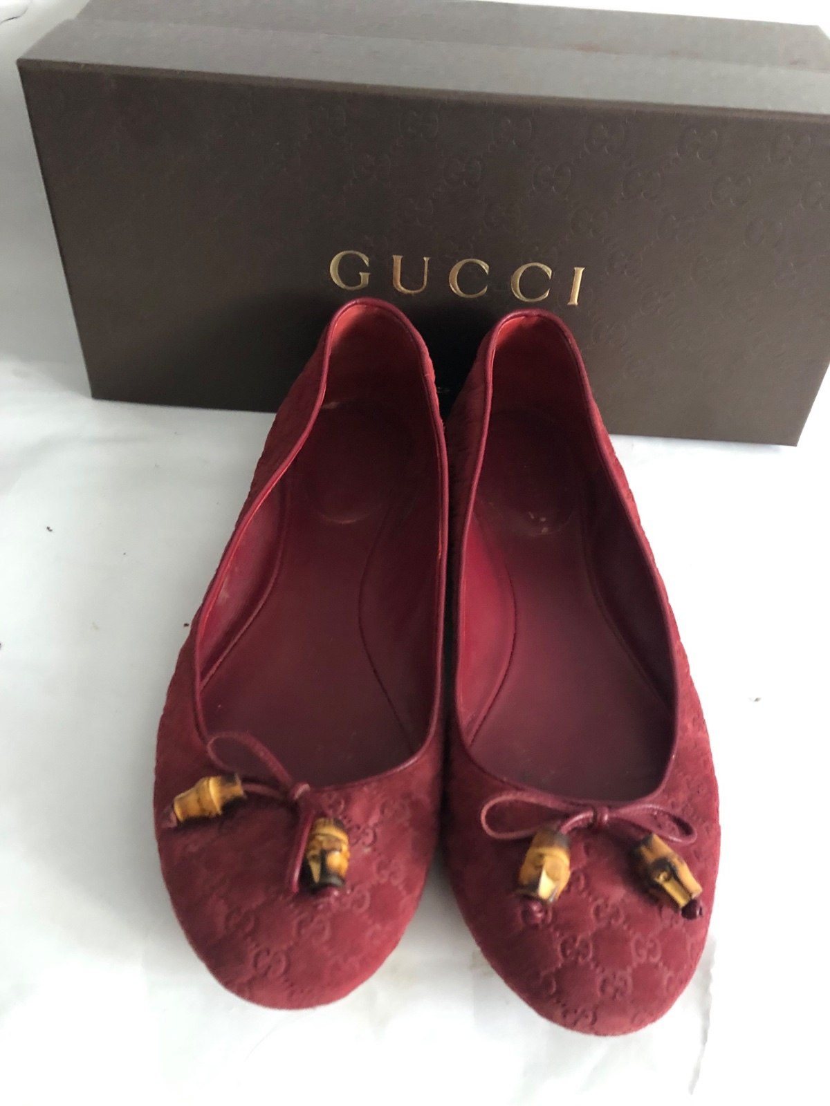 Gucci guccissima bamboo baleriny topanky kozene Malo nosene. Retail 362€, original skatula, farba burgundska, velkost 371/2