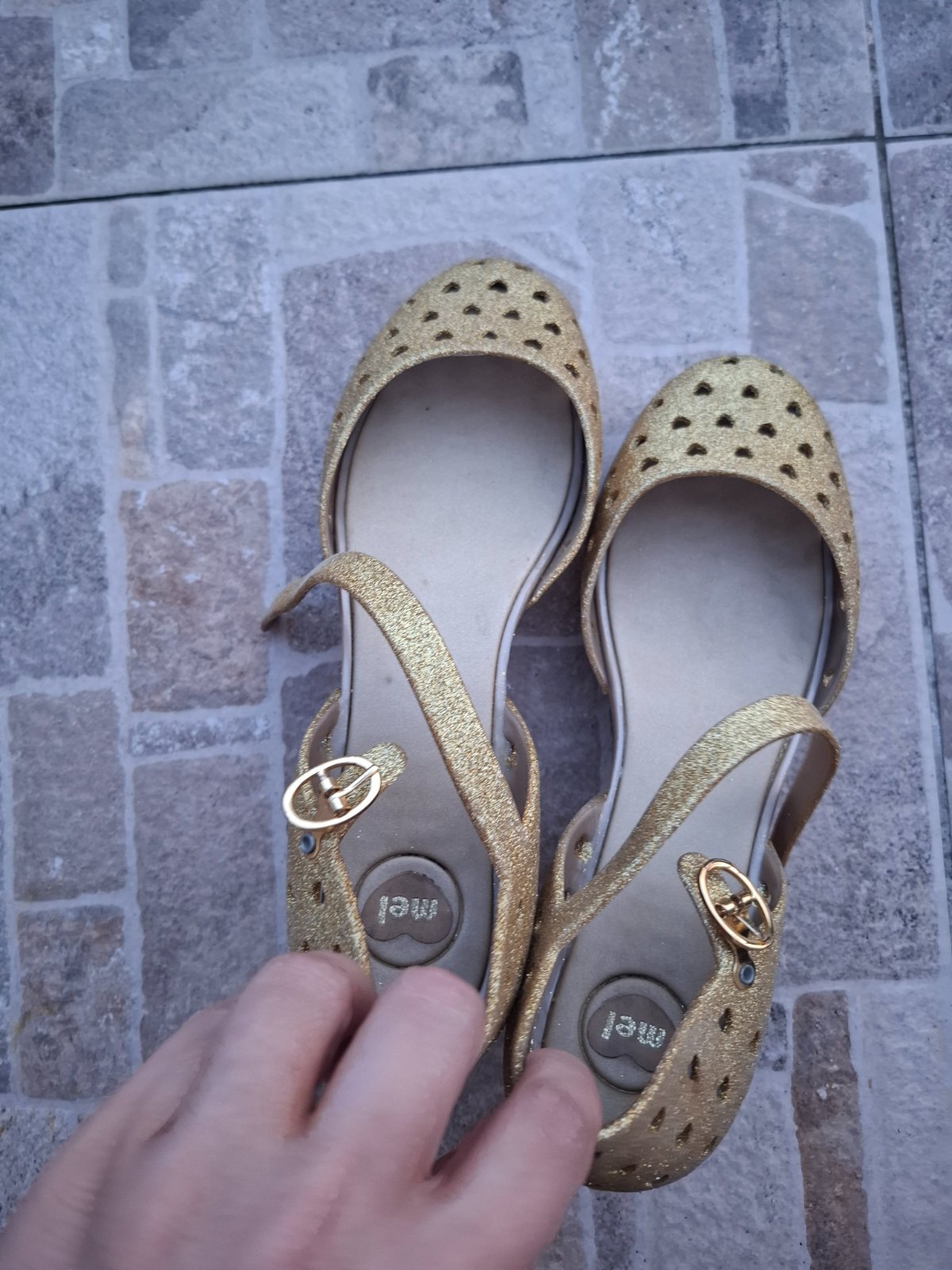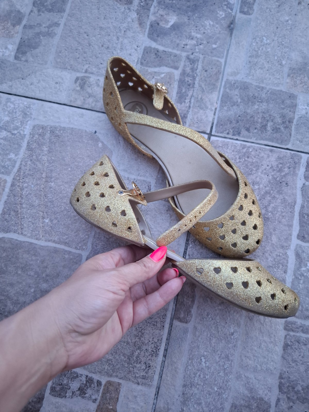 Balerinky v nádhernom zachovalom stave bez akéhokoľvek poškodenia minimálne nosené. Nádherné sa trblietavé. Veľkosť je uvedená 39 ale sadnú na 38