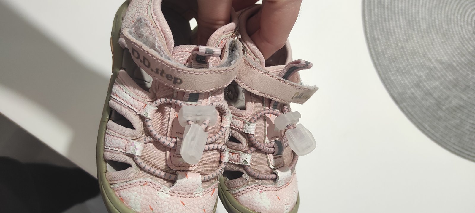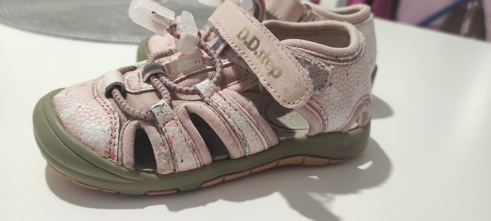 Ponúkame krásne kožené sandálky obľúbenej značky D.D.Step. Sandálky sú celokožené, majú zapínanie na dva suché zipsy, sú stredne ohybné, čo prispieva k zdravému vývinu nožičky a klenby. Päta je zat...