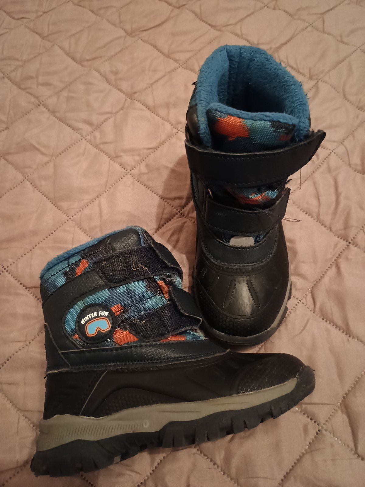 Čižmy veľkosť 25, Zn. Lupilu. Čižmicky sú v neposkodenom stave, nepremokavé, akurát vnútro už nie je sneho biele potrebné vyčistiť. Pri nosení nevidieť. Vnútorná dĺžka 15 CM.