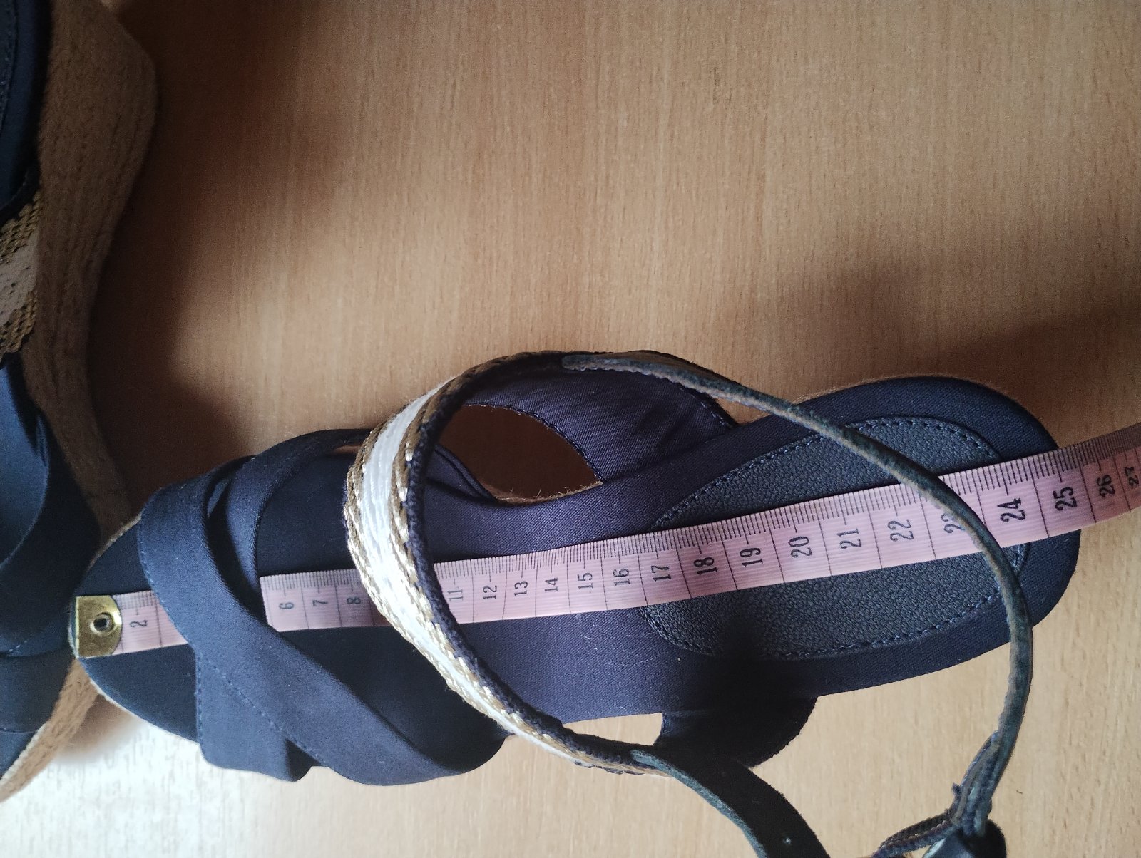 Predám len raz vyskúšané pekné sandálky, dĺžka vnútorná je 24,7 cm, výška podpätku 7 cm, pre mňa sú dosť