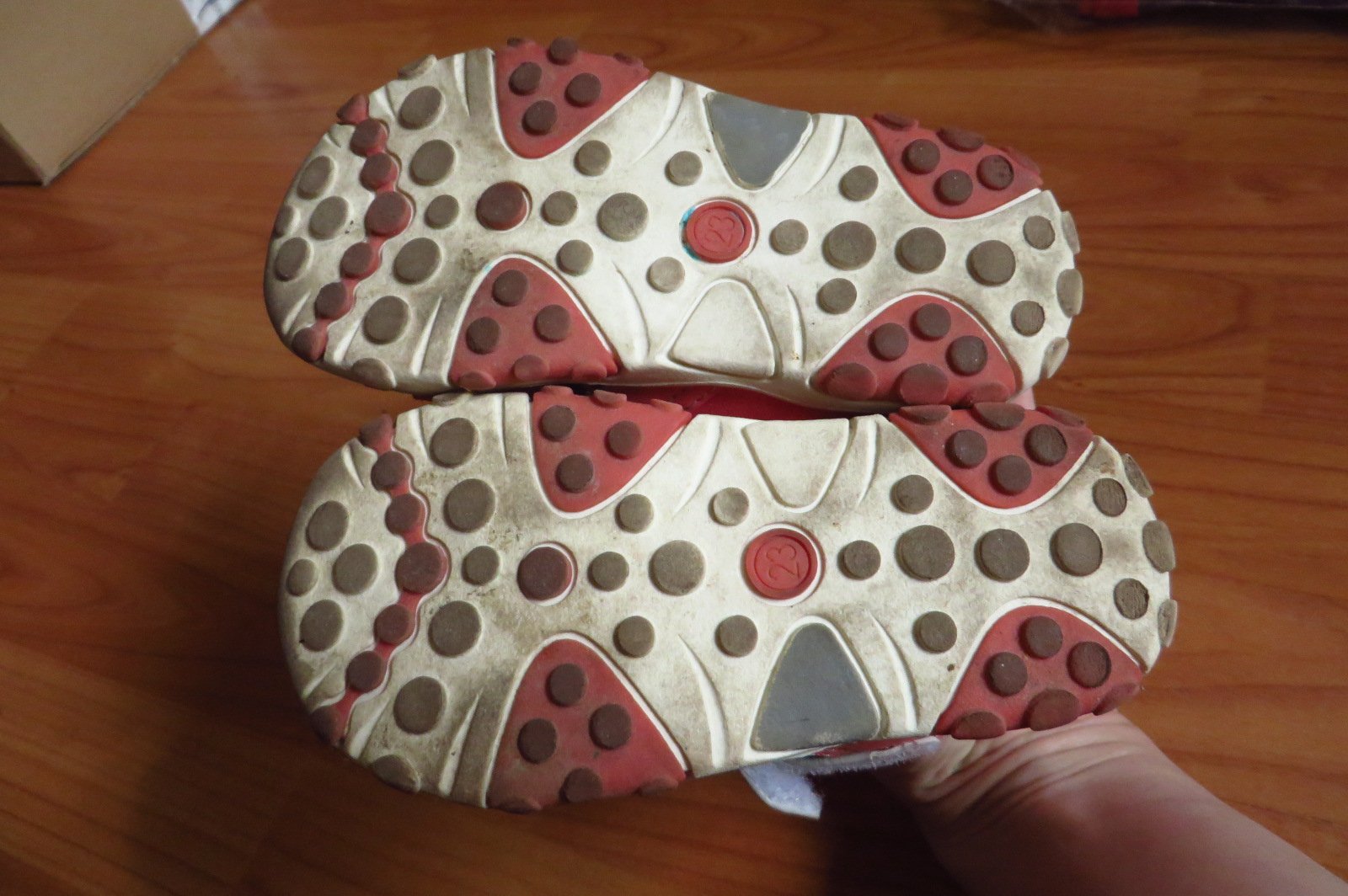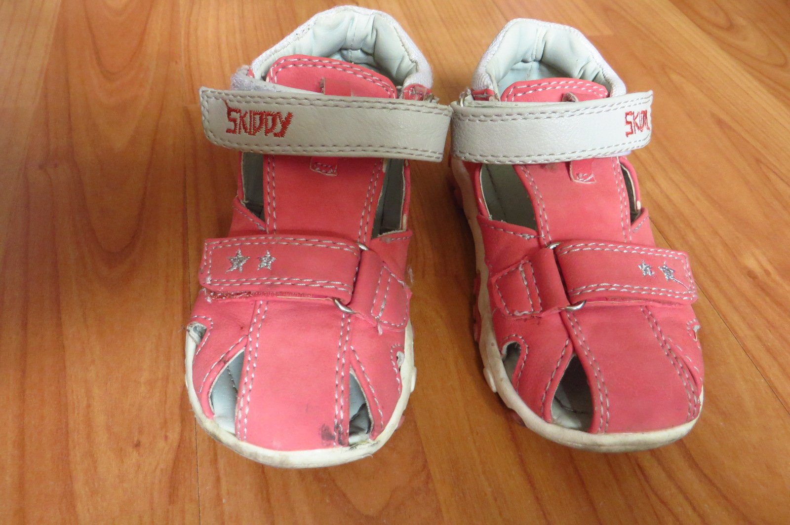 Predám minimálne používané dievčenské sandálky, veľ. 22 - vnútorná dĺžka je 14,5 cm. Na pravej špičke je fliačik, je to odfotené. Majú neschodené podrážky. Sú krásnej lososovej farby.