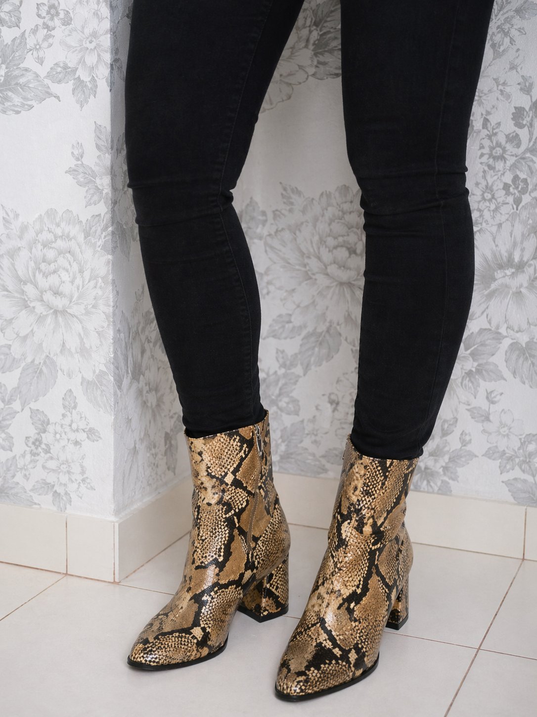 ZARA Damske kotnikove čižmy imitacia koži -vzor "pyton".1 krat obute.