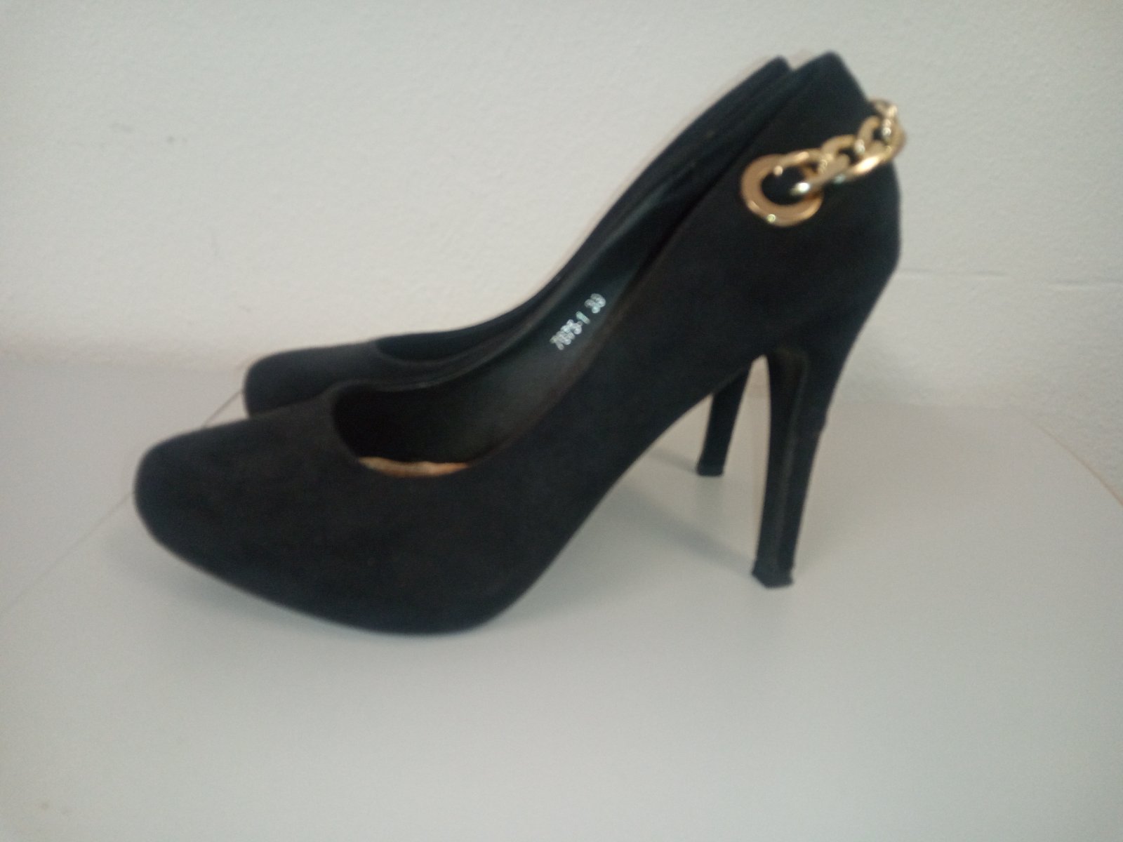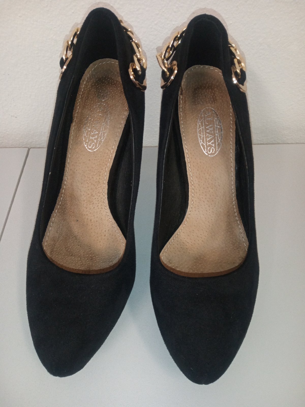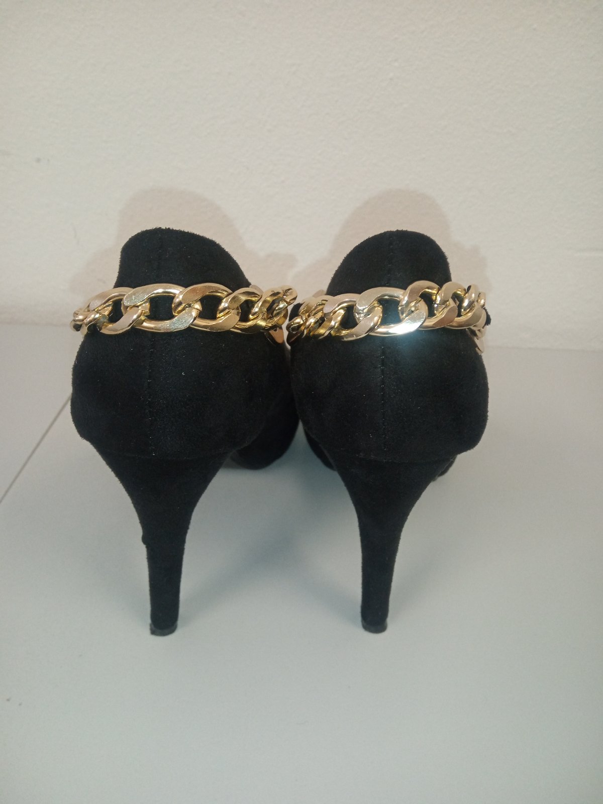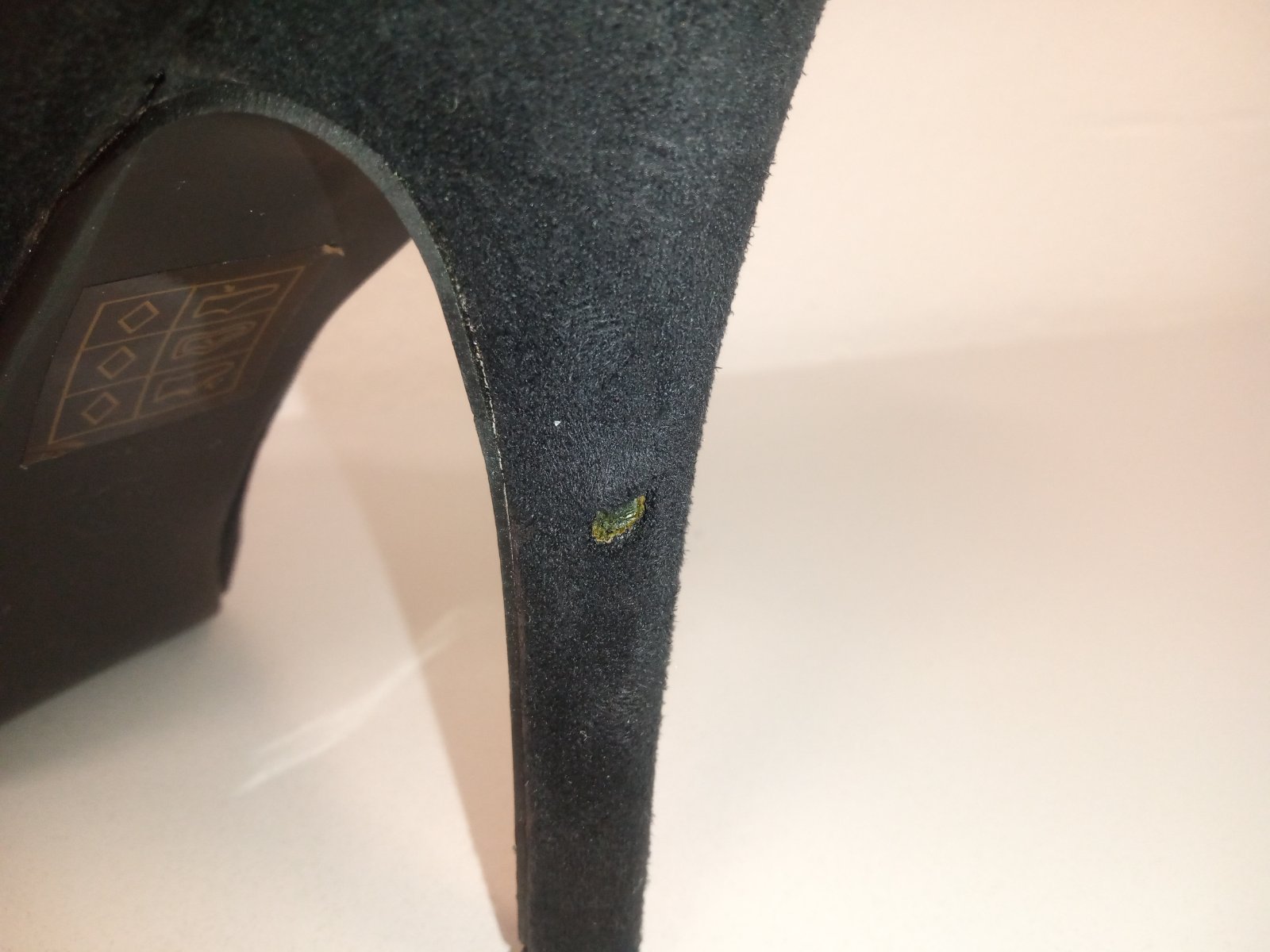 Topánky malo nosené, mala odreninka na ľavom opätku, na druhej fotke zatrete čiernou farbou. Pri chodení nevidno.