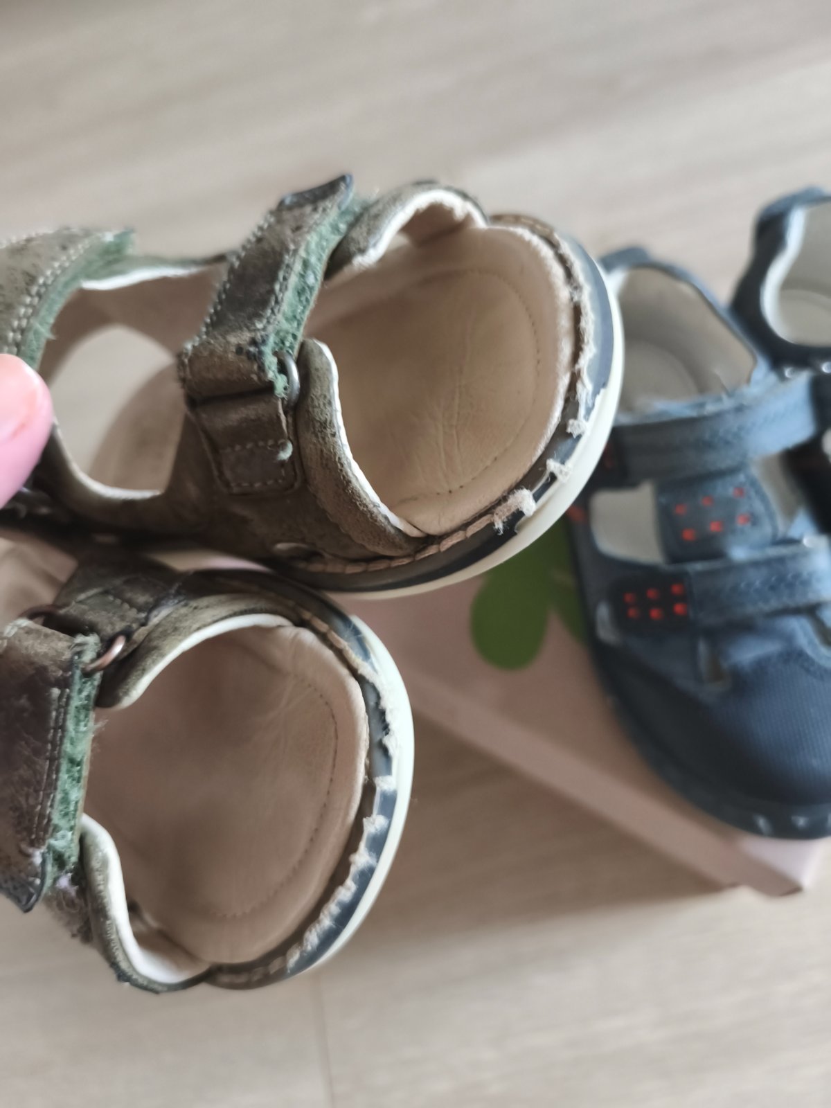 Dvoje kožené sandálky,nosili sme do MŠ,veľkosť 25 a 26,stav ako na foto,lepky držia