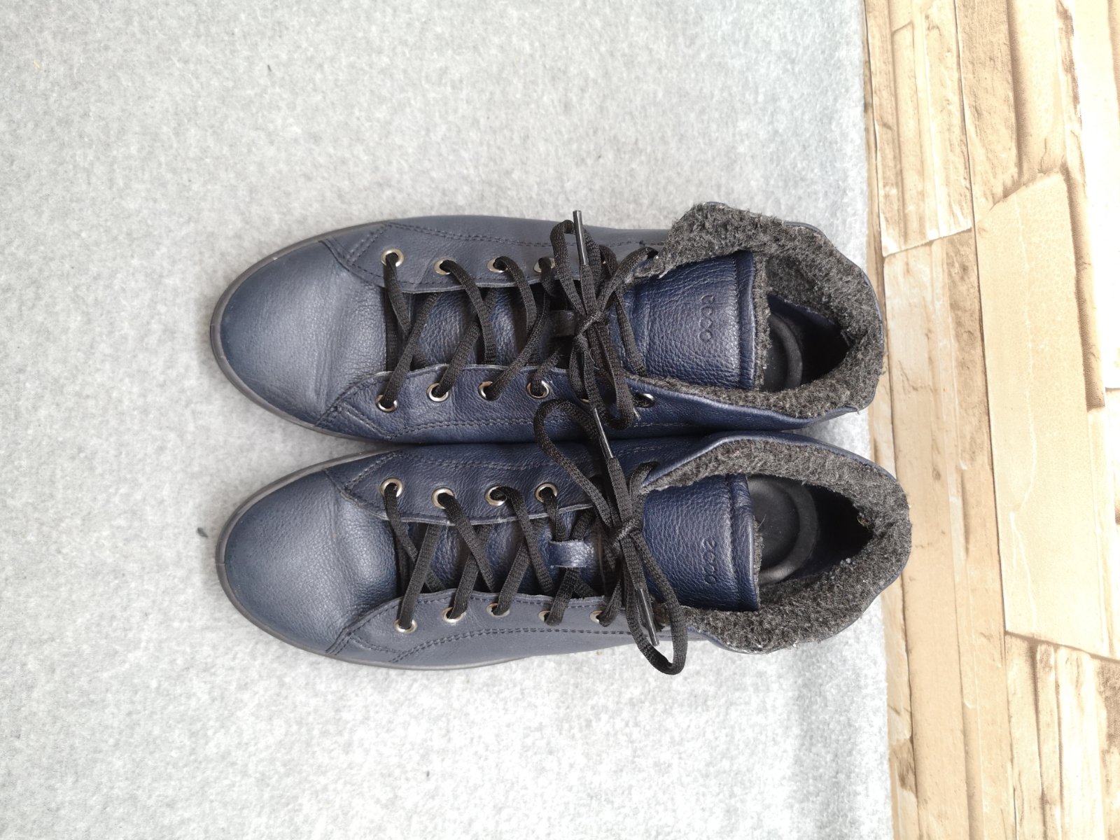 Ecco 41 - dámske kožené tmavomodré zateplené topánky
