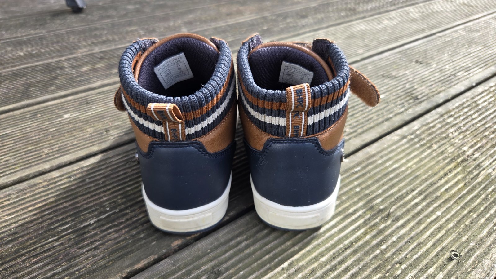 Predám chlapčenské jarné/jesenné vyššie topánočky. Veľmi pohodlné, farebne univerzálne - modro hnedé. Zapínanie na suchý zips, zipsy parádne držia. Nosené príležitostne, nevychodené. Bez poškodení, známky bežného nosenia - kde tu škrabanček. Odporúčam, veľmi fešácke :-)