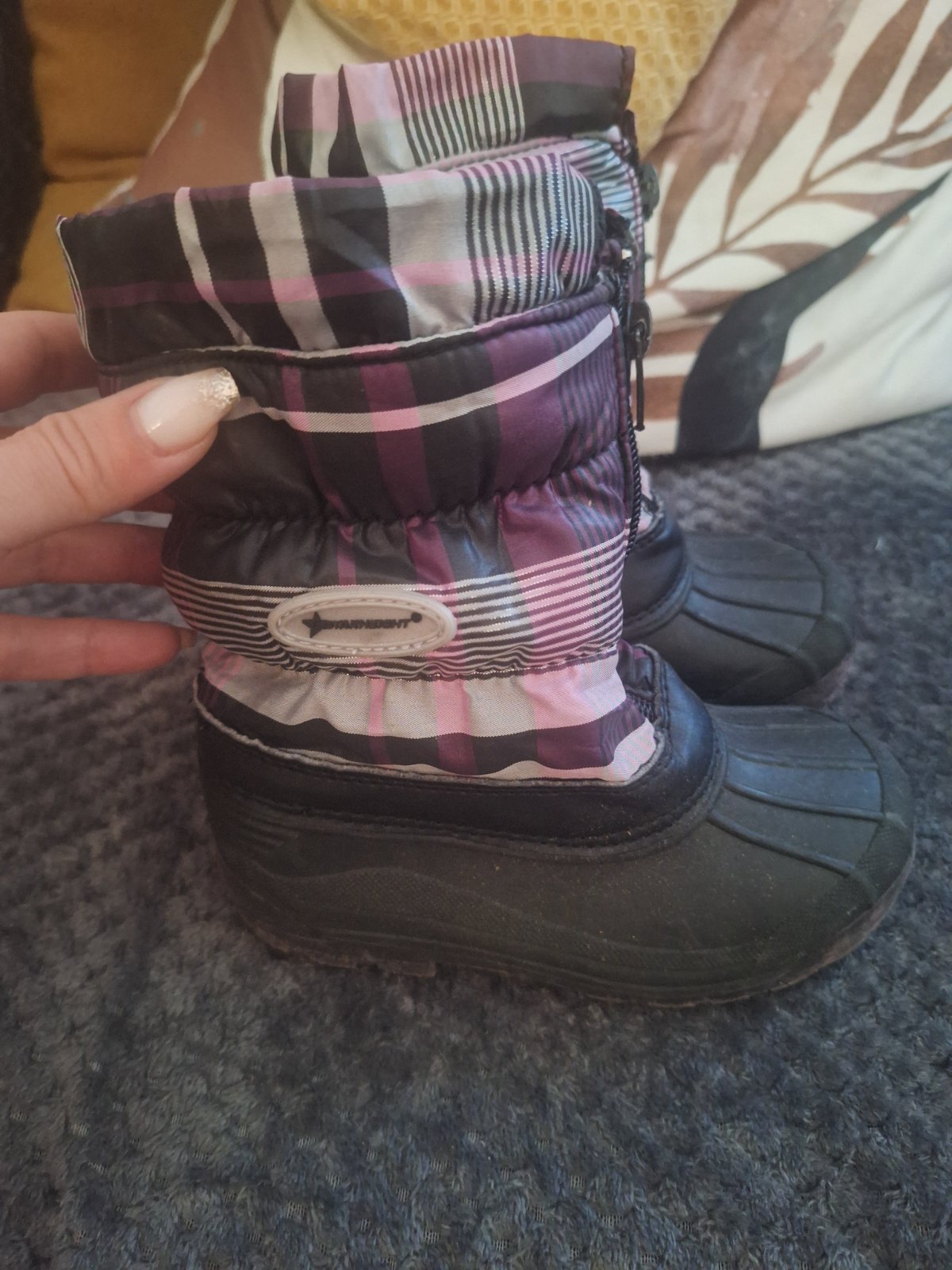 Predám fialové snehule, nosené, v dobrom stave. Vonkajšia dĺžka 20 cm.