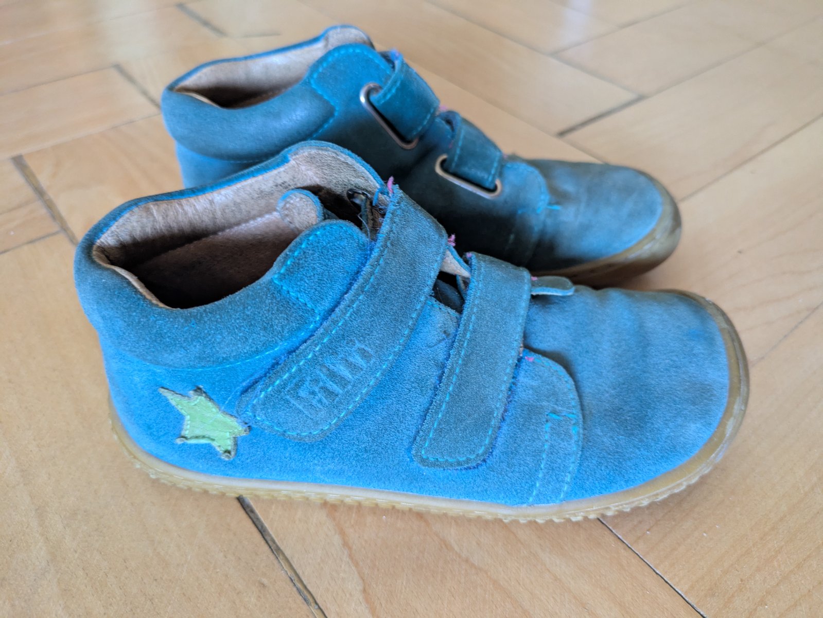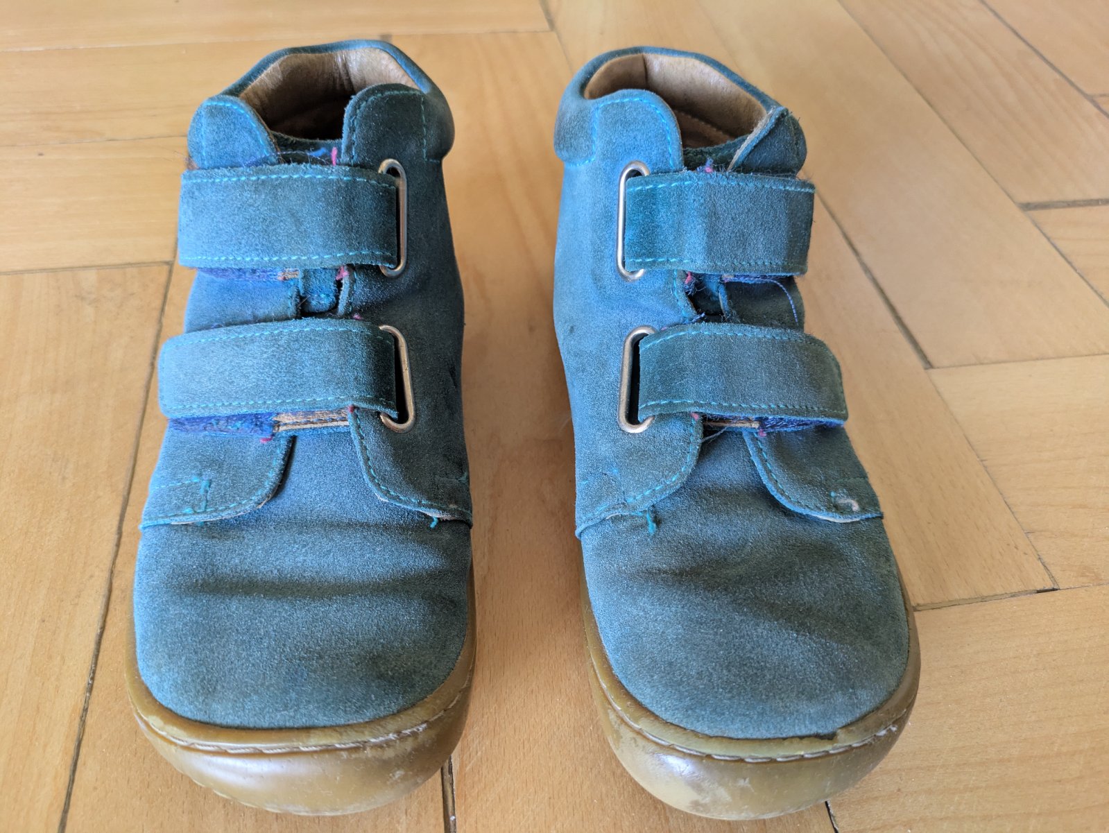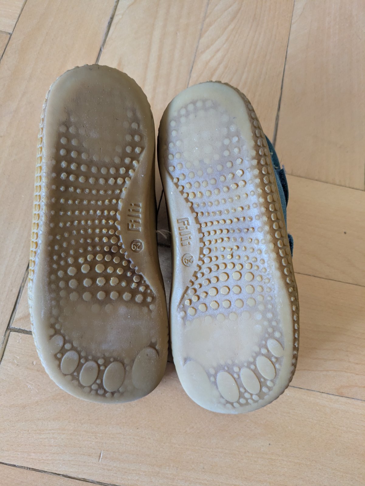 Hodne nosene, ale okrem hladkej podrazky ziadne viditelne poskodenia, suche zipsy drzia. Makkucke, ohybne, syn ich mal velmi rad.