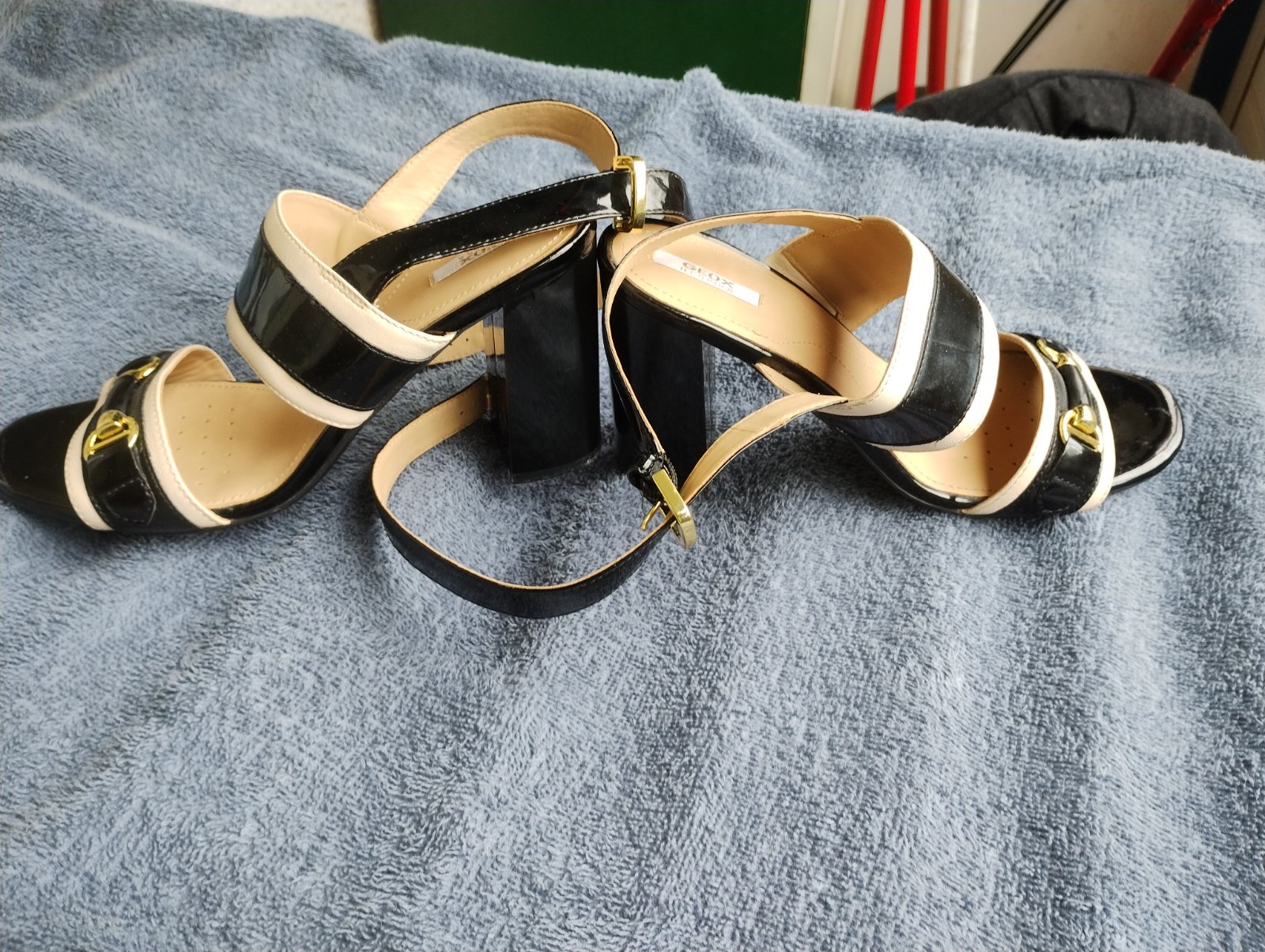 Len raz obuté luxusné sandálky. Viď foto. Pôvodná cena 110 EUR. Výška opätku 9 cm. Super pohodlné. Geox respira. Skôr než napíšete, čítajte moje podmienky a pozriete všetky foto, rozmery sú zvyčaj...
