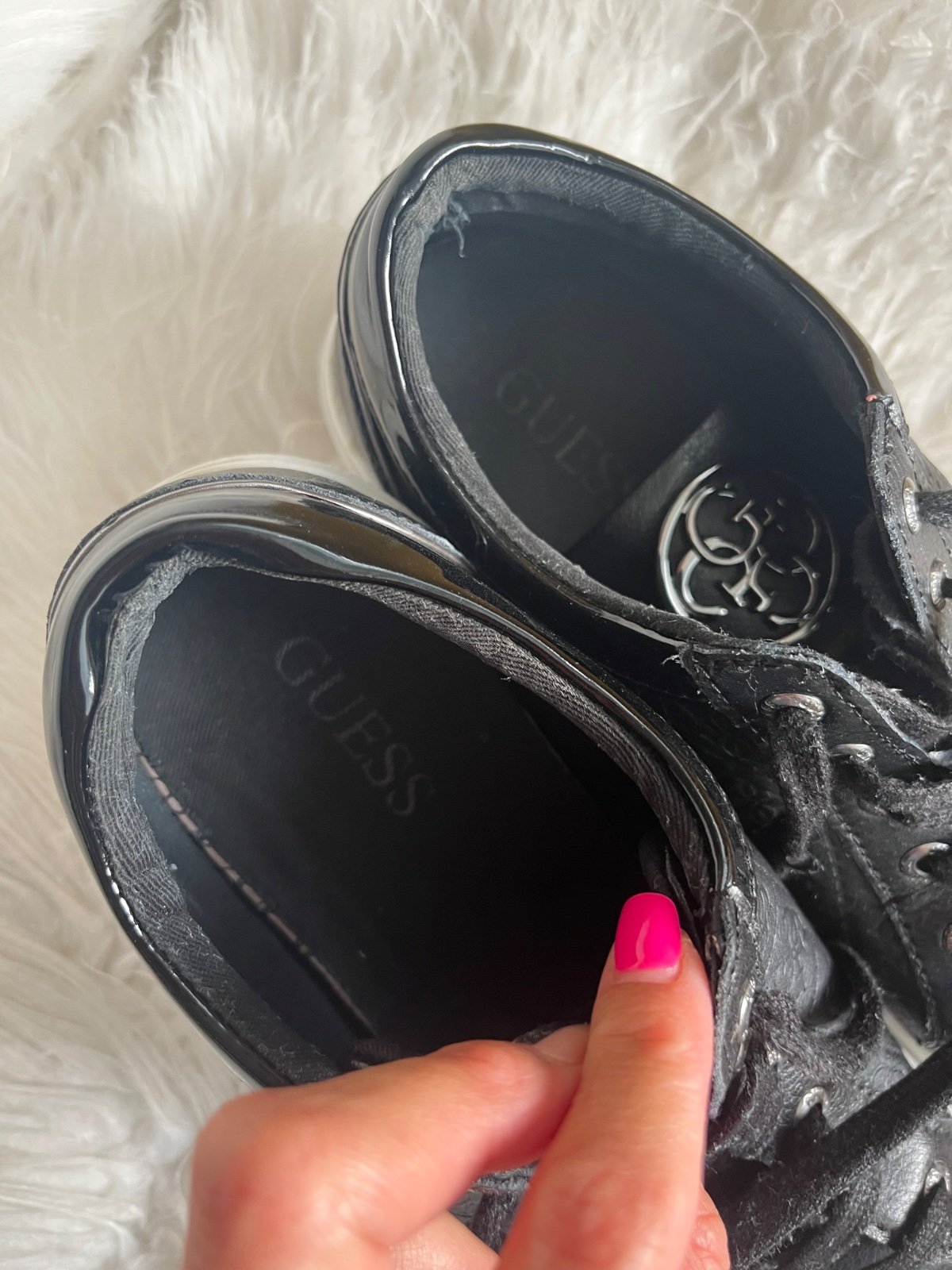 Sneakersy Guess som kúpila tu ako 38ky, ale sú mi malé (mám 25 cm nohu), preto uvádzam radšej číslo 37 na 24 cm nohu.