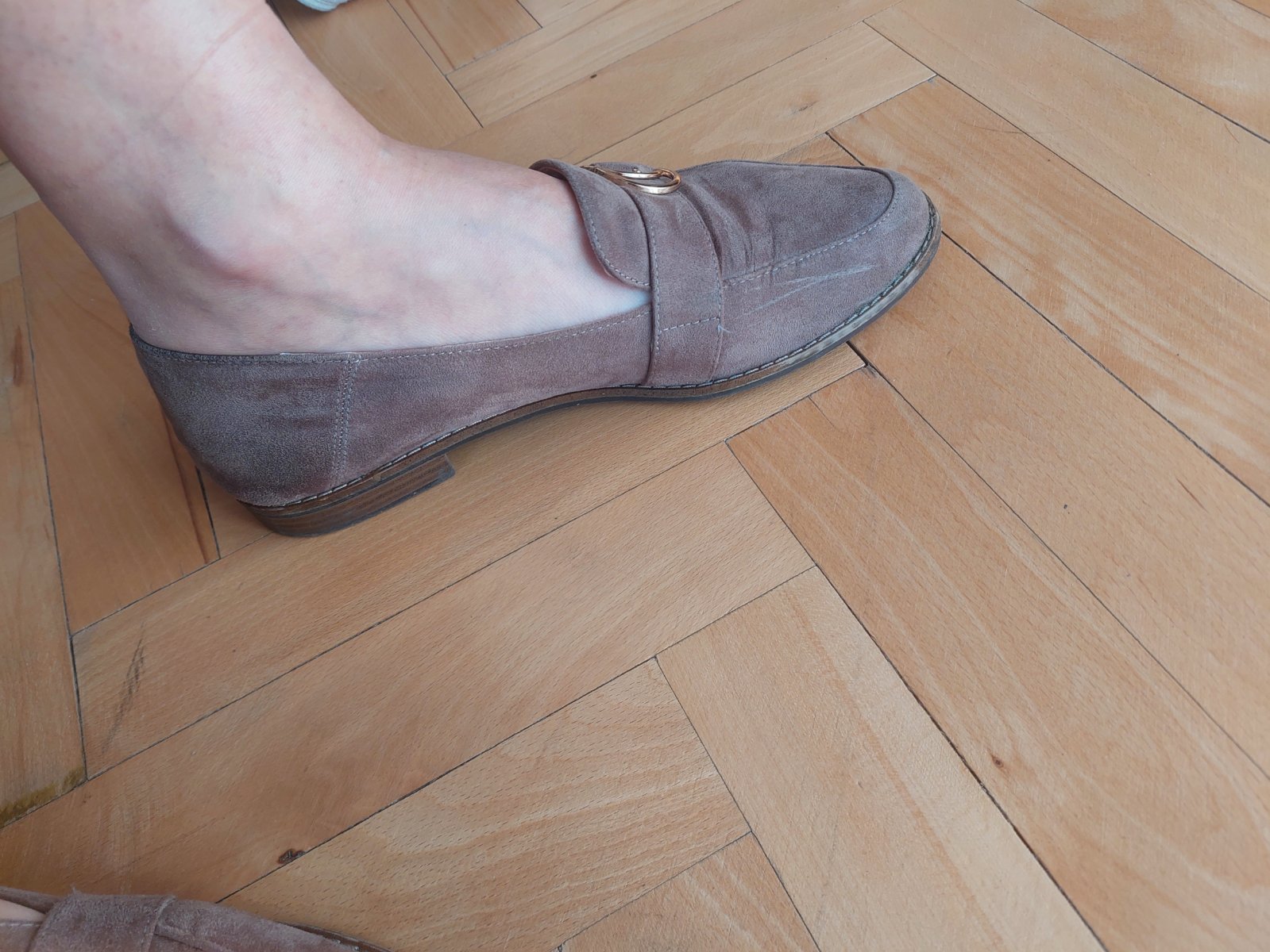 mokasíny béžovo-hnedej farby. Skvelý stav. Nevhodné na širokú nohu a najma na vysokýpriehlavok. VD 27 cm.