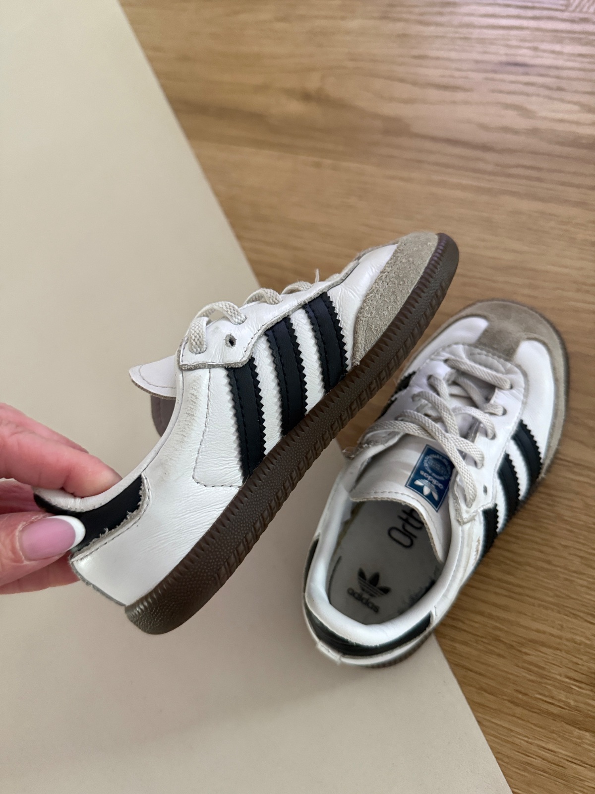 Pozývam po synčekovi kožené tenisky Adidas Samba. Štýlové, praktické, obúvajú sa na gumičku, veľmi pohodlne.