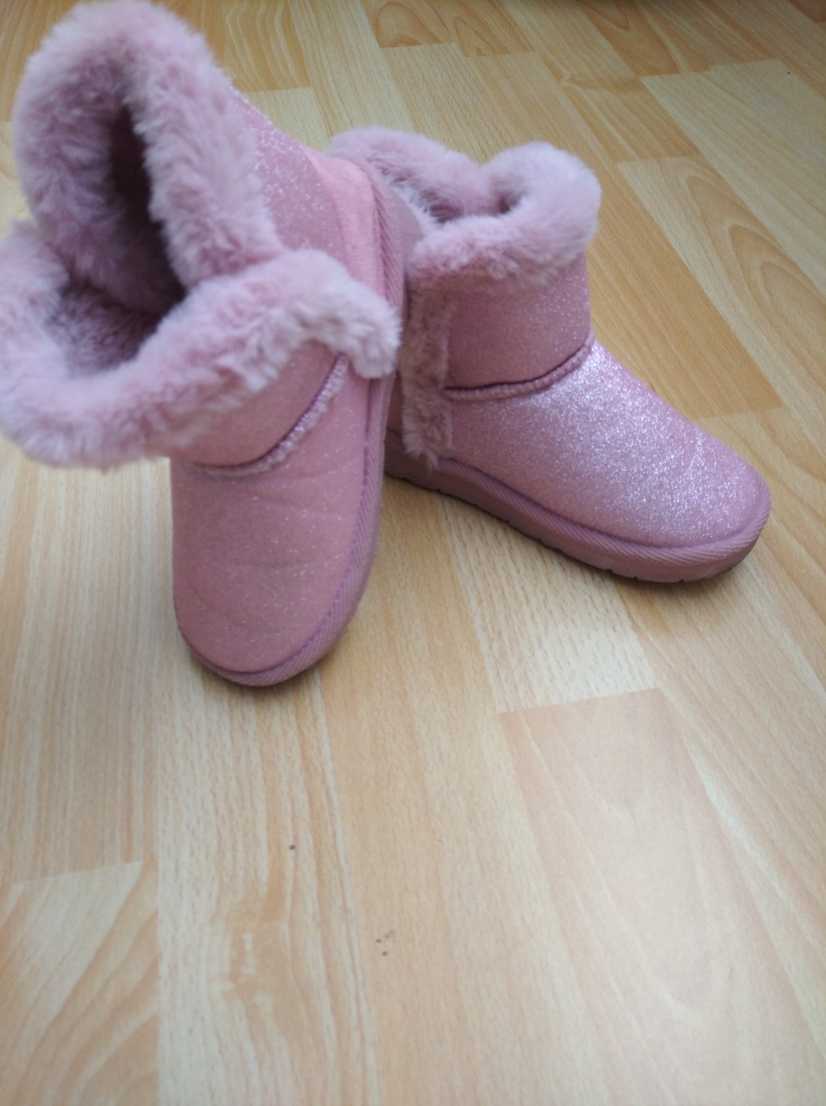Perleťové čižmičky obuté mojou dcérkou 1 krát nakoľko je uvedená veľkosť 30 ale sedia na 29, vnútorná dĺžka 17,5cm tak jej boli hneď malé. Bez poškodenia, ako nové. Podrážka gumená, nešmýka sa.