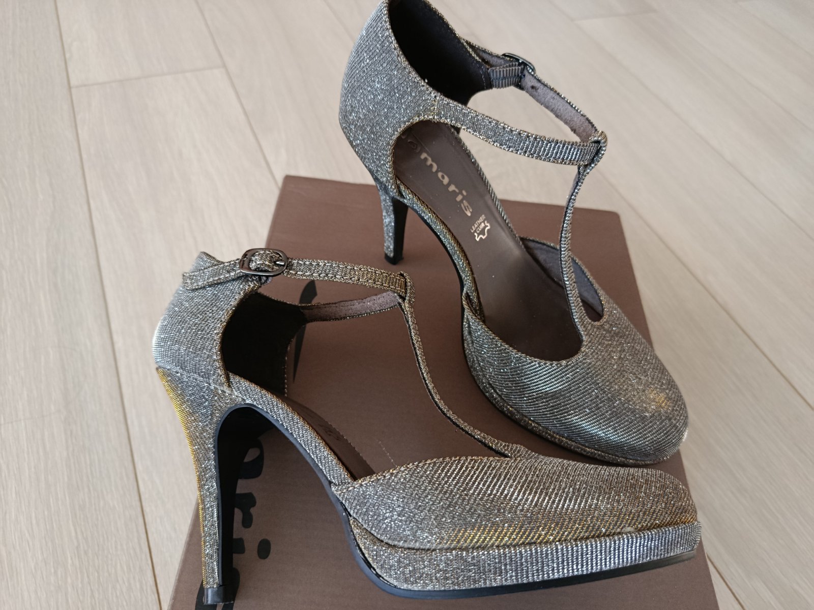 Predám semišové lodičky značky Tamaris v top stave. Boli iba vyskúšané v interiéry. Na ľavej je pri špičke drobný škrabanček (vid. FOTO) asi od výroby. Ja mám širšiu nohu, tlačia ma. Vnútorná dĺžka...