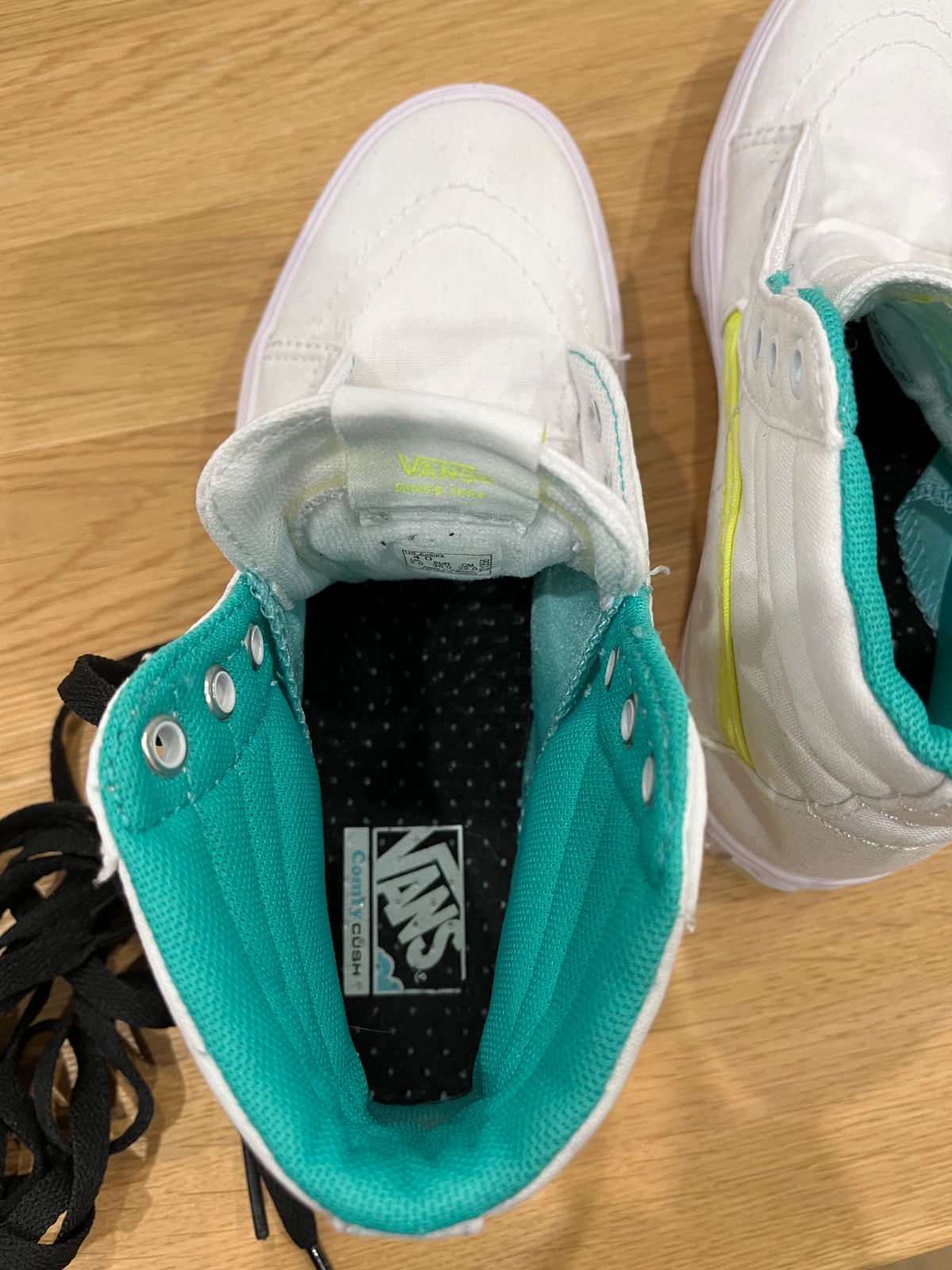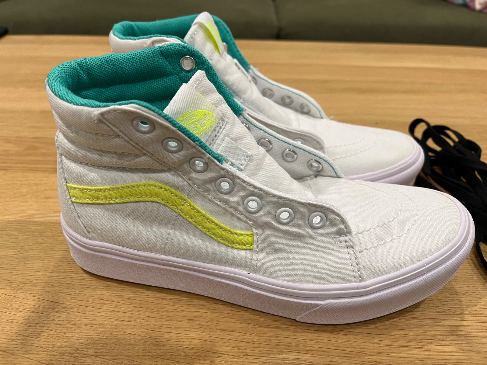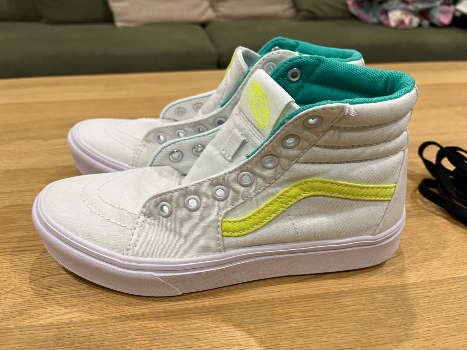 biele platenky s čiernymi šnurkami, tie su vyvlečene, lebo som tenisky prala