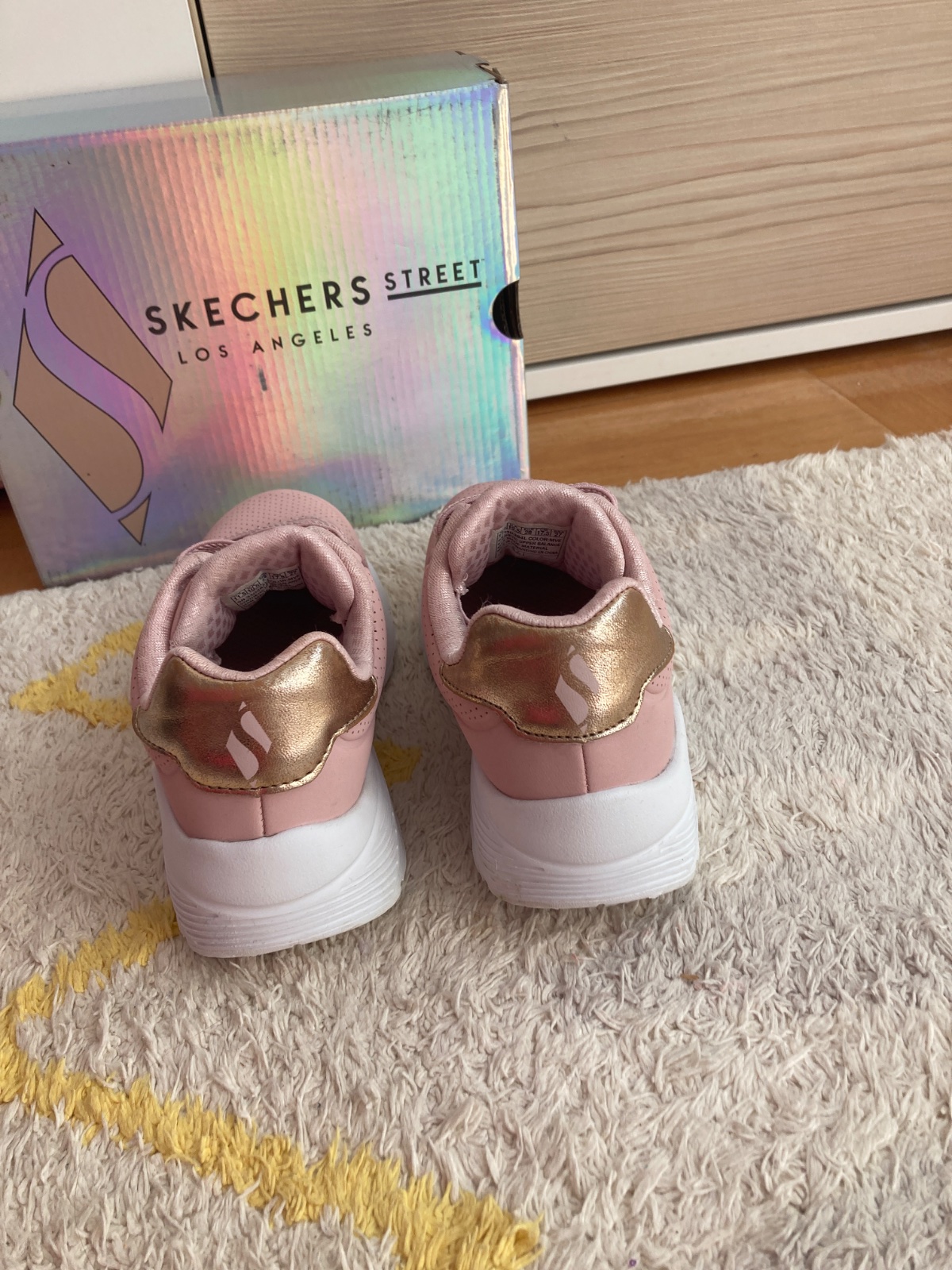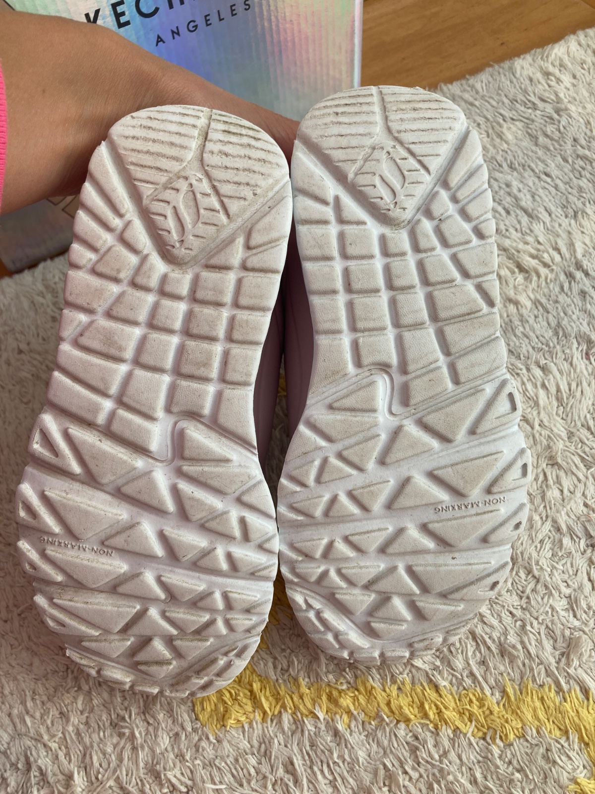 Ponukam na predaj tenisky Skechers uno lite. Kupované na jar 2025. Dcérke rýchlo vyrástla nozicka a mala aj iné topánky, takže ich mala iba pár krat a sú ako nové. Pc bola 45e. Vďaka svojmu povrchu zvládnu držať nohu v suchu aj v menšom daždi, preto sú vhodne aj ako prechodna obuv. Makkucke, ľahké a ľahko sa obúvajú, nazuvacie, netreba viazať šnúrky. VD na foto. Dajú sa prat v práčke, dokonca to odporúča aj výrobca. K dispo aj originál krabica.