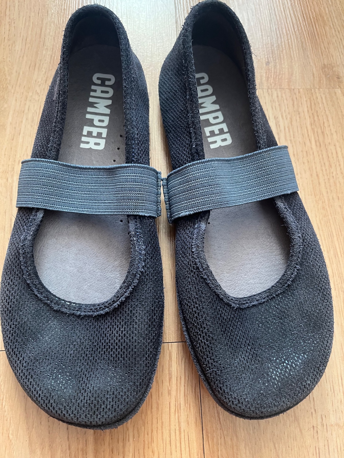 Predám dievčenské balerínky Camper vo veľkosti 36, vd je 23,2 cm a šírka 8 cm. Topánky sú vo výbornom stave bez poškodení.